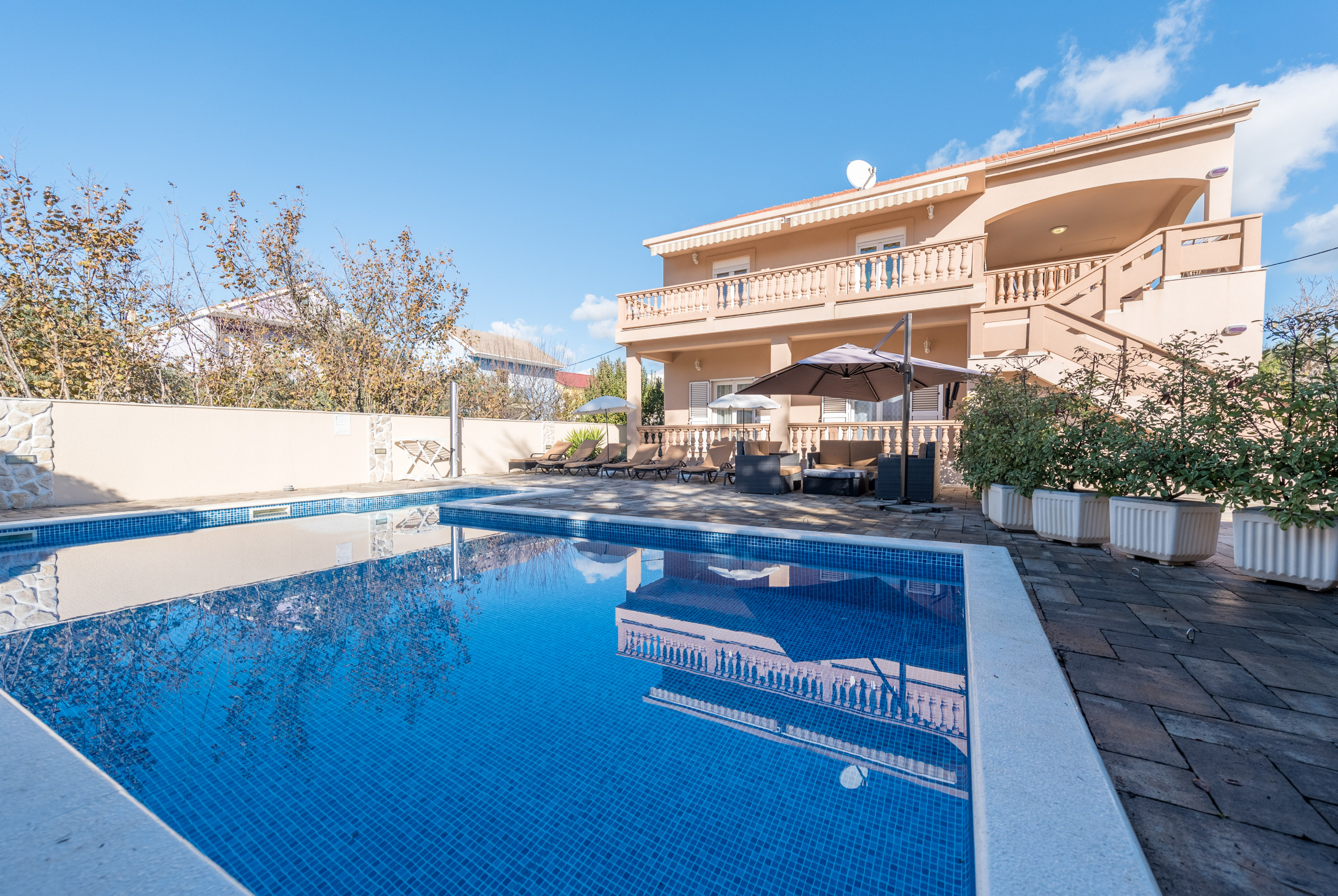Das Ferienhaus Lolita bietet Platz für maximal 10 Personen, die in 6 Schlafzimmern mit Doppelbetten (180 x 200) untergebracht werden können, und verfügt über eine Wohnfläche von 220 m². Drei Schlafzimmer befinden sich im Erdgeschoss, die übrigen drei im Obergeschoss. Außerdem gibt es 2 Badezimmer mit Dusche und 2 separate Toiletten. Ihnen stehen zwei Wohnzimmer mit Sofa, Couchtisch und Fernseher zur Verfügung. Das Kochen wird Ihnen leicht fallen, denn Sie können 2 voll ausgestattete Küchen nutzen. Hier haben Sie die Möglichkeit, Ihre Lieblingsgerichte für Familie und Freunde zuzubereiten und sie in zwei Esszimmern mit Tisch und Stühlen zu genießen.