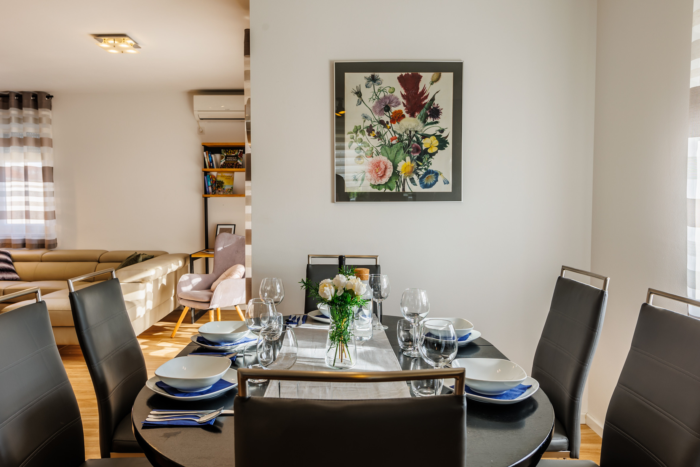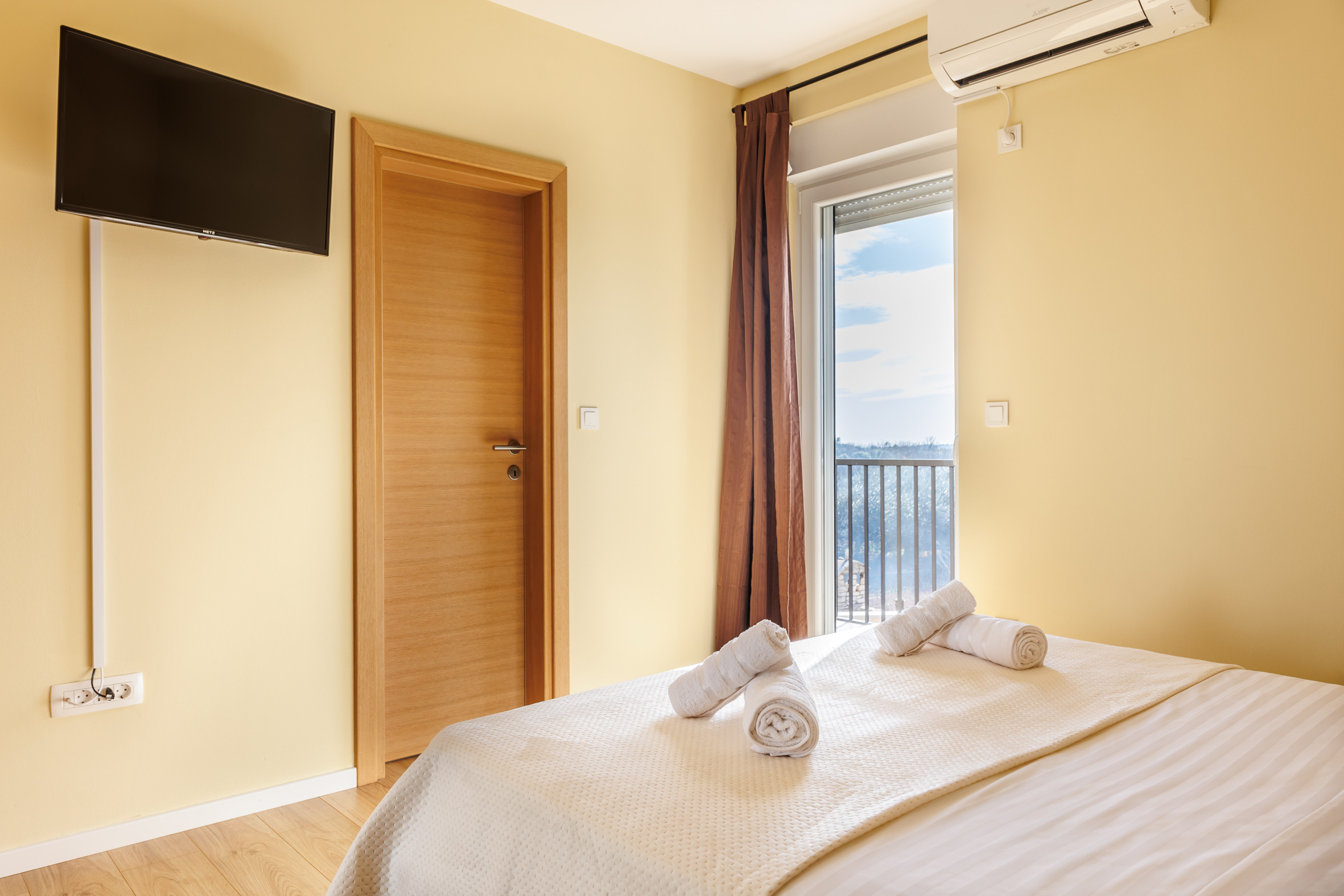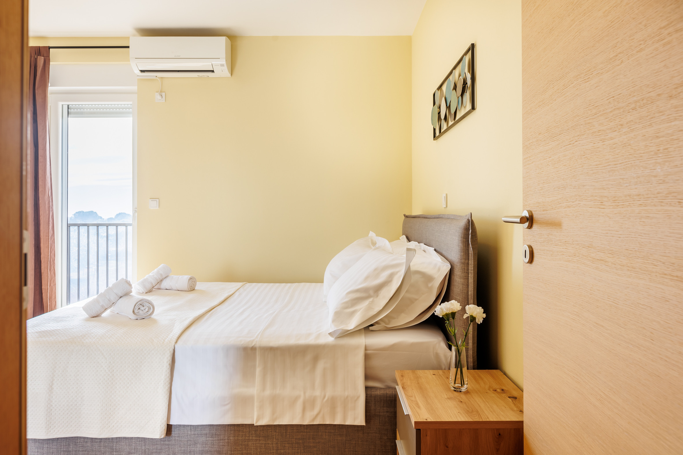 Die gesamte Unterkunft ist vollständig klimatisiert, einschließlich aller Schlafzimmer und des Wohnbereichs, was sie das ganze Jahr über zur idealen Wahl für einen erholsamen Aufenthalt macht. Das Haus verfügt über drei elegant gestaltete Schlafzimmer mit Doppelbett, jeweils mit eigenem Badezimmer en suite, was Privatsphäre und Komfort für 6 Gäste gewährleistet. Die Zimmer befinden sich im ersten Stock des Hauses.