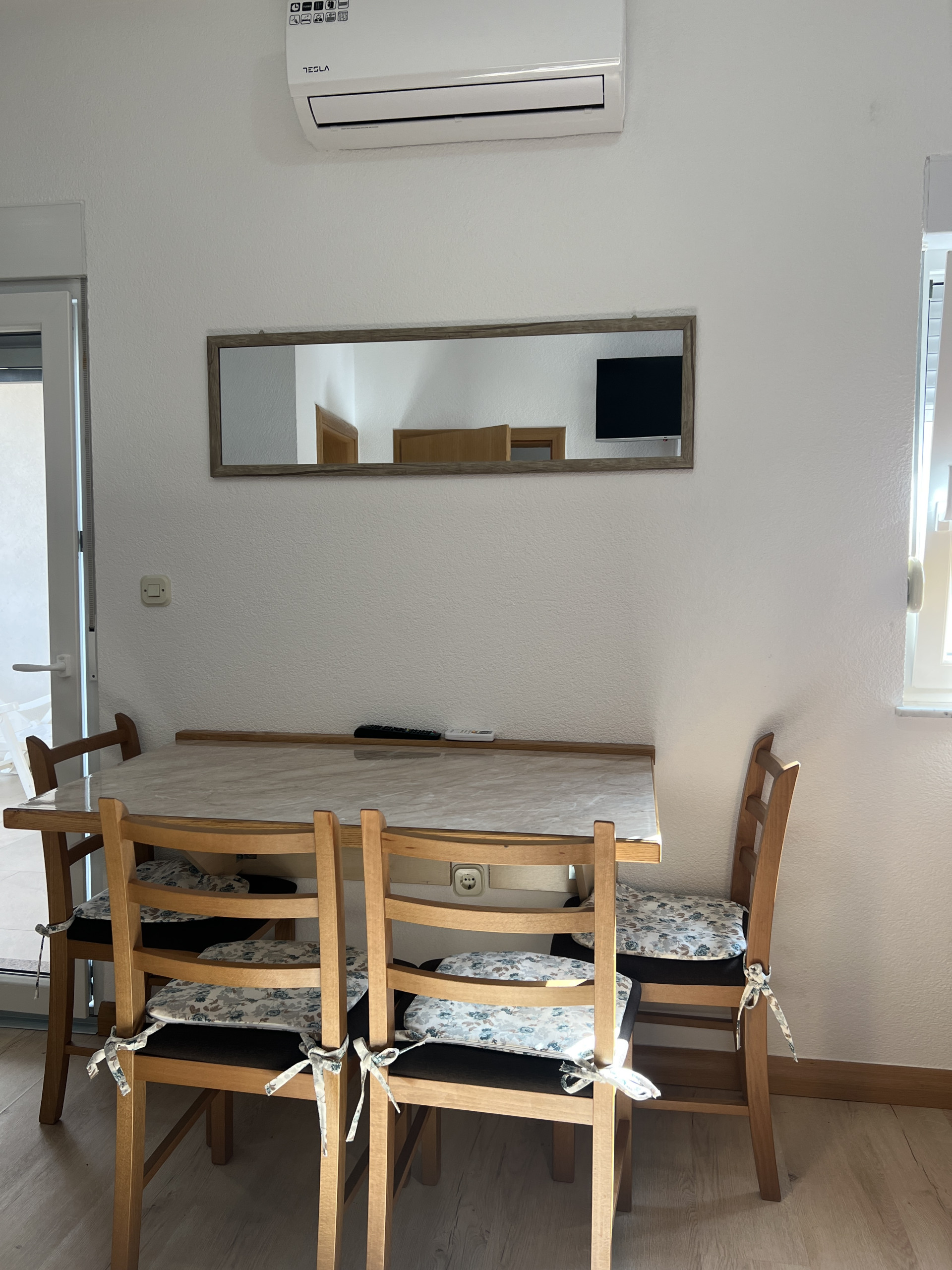 Das Apartment 3 befindet sich im Erdgeschoss des Hauses und bietet 38 m² Wohnfläche. Es bietet Platz für maximal 4 Personen. Sie werden bequem in 1 Schlafzimmer mit einem Doppelbett untergebracht. Zwei weitere Personen können auf dem Sofa im Wohnzimmer schlafen, wo sich auch ein Fernseher befindet. Sie nutzen außerdem 1 Badezimmer mit Dusche. Das Schlafzimmer verfügt außerdem über eine eigene Terrasse. Das Apartment ist klimatisiert und verfügt über WLAN. Die Küche ist komplett ausgestattet, sodass Sie problemlos Mahlzeiten für Familie und Freunde zubereiten können. Es gibt auch ein Esszimmer mit einem Esstisch.