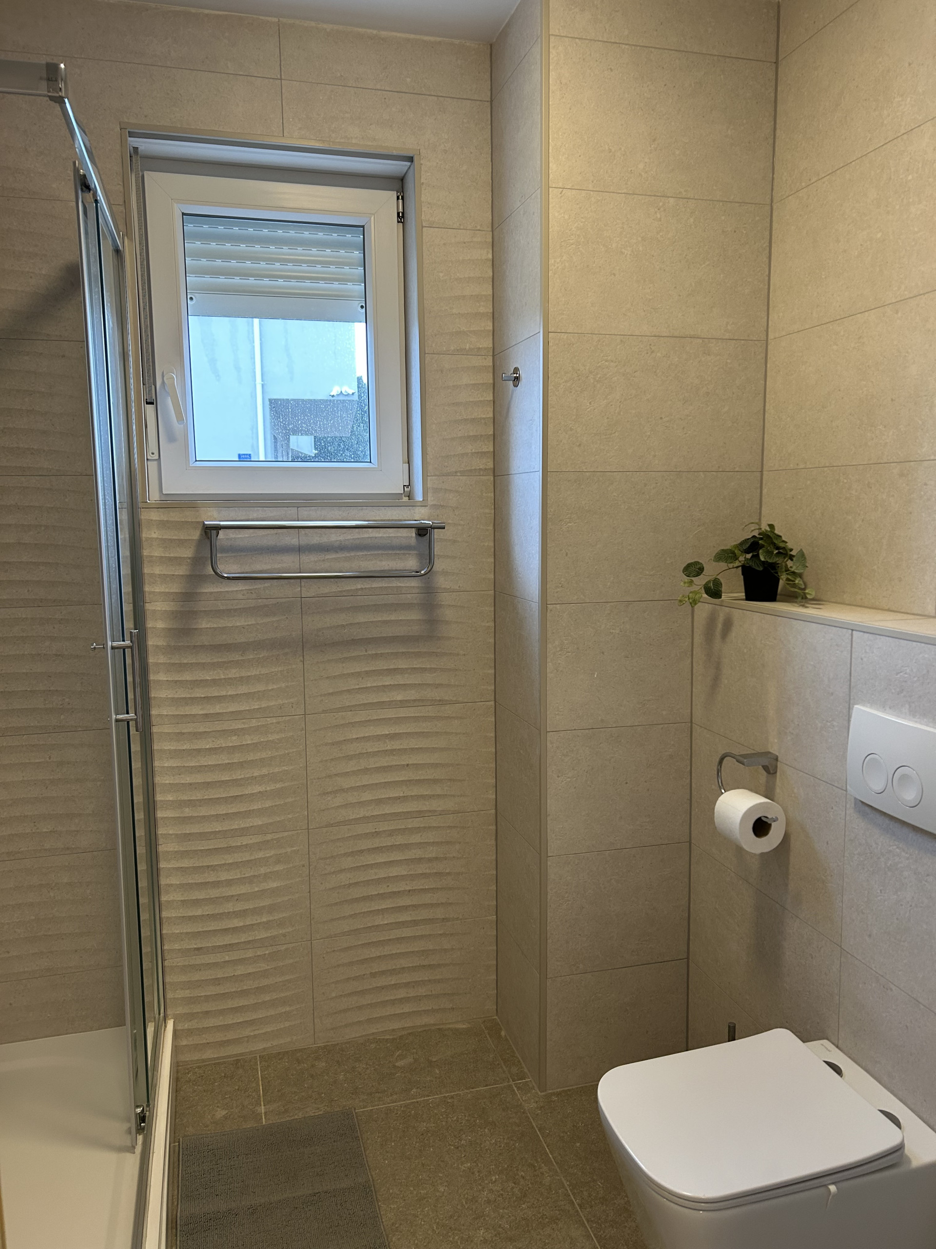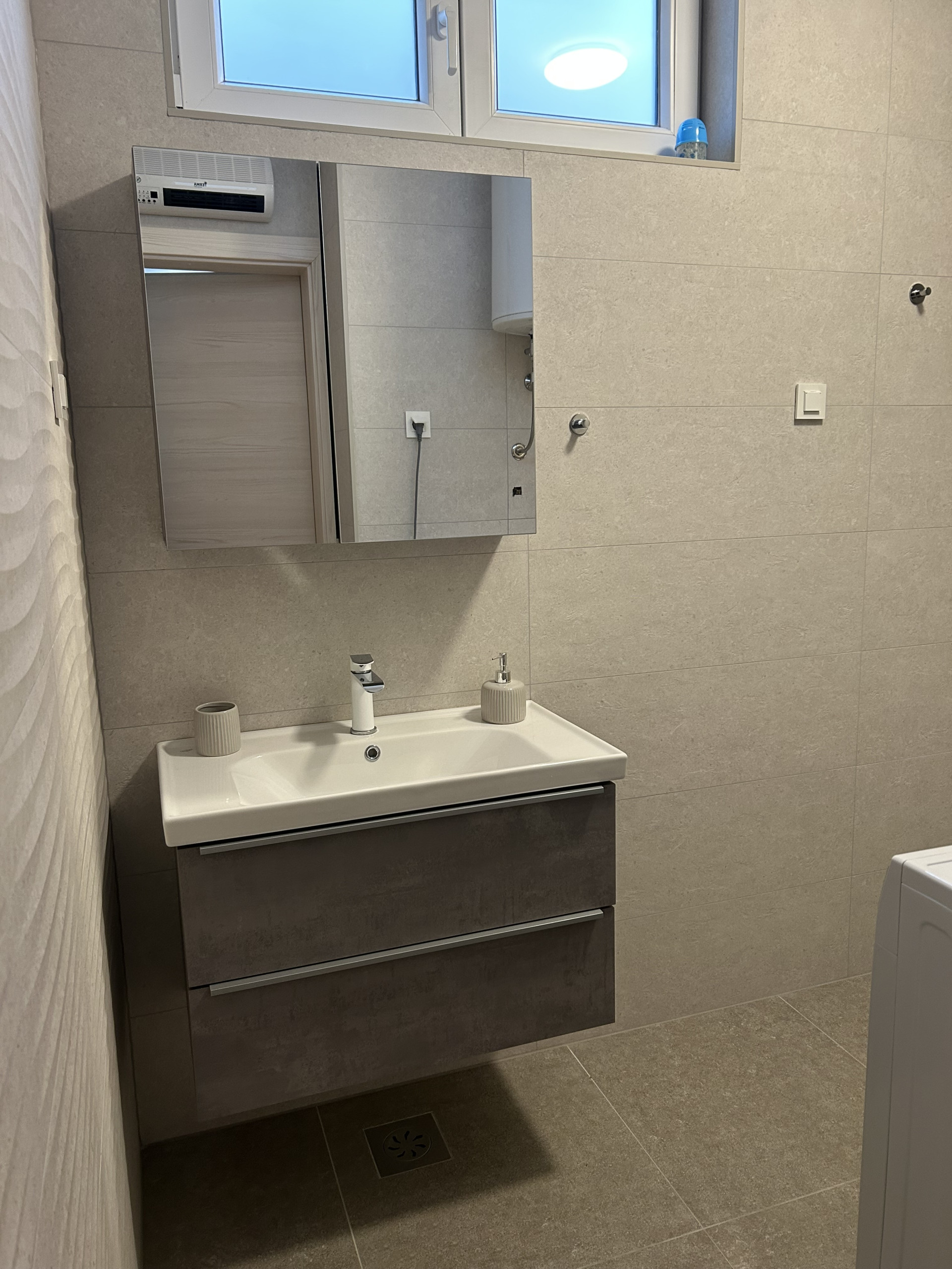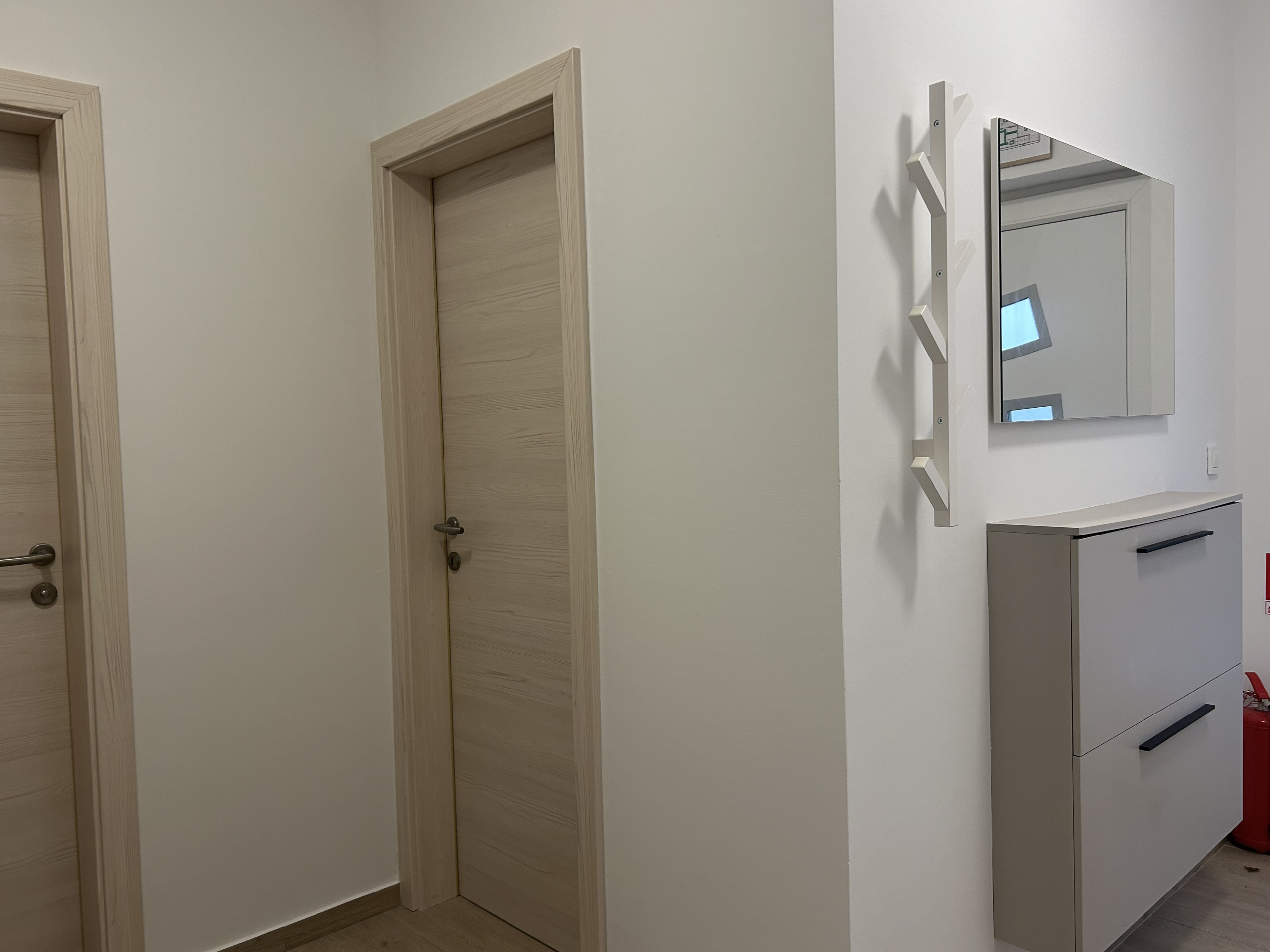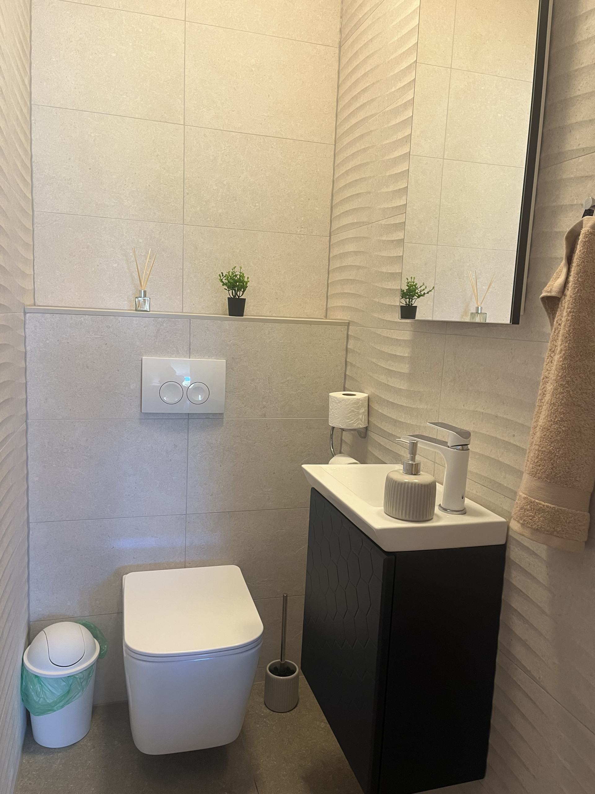 Die Wohnung ist vollständig klimatisiert und verfügt über zwei elegant eingerichtete Schlafzimmer mit Doppelbetten, zwei moderne Badezimmer sowie eine zusätzliche separate Toilette, die maximalen Komfort und Privatsphäre für alle Gäste gewährleistet.