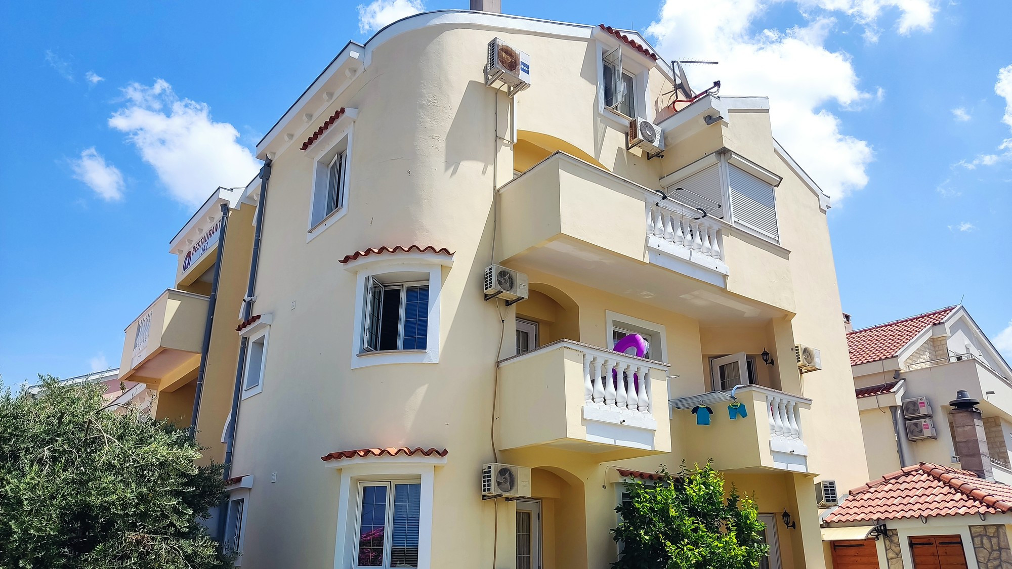 Dank seiner Lage in erster Reihe zum Meer bietet es den Gästen ein einzigartiges Erlebnis, indem sie dem Rauschen der Wellen lauschen und den Duft der mediterranen Luft genießen können, während sie sich im Apartment erholen. Das Apartment befindet sich in einem Wohnhaus mit insgesamt 4 Apartments, im Erdgeschoss befindet sich ein Restaurant.
