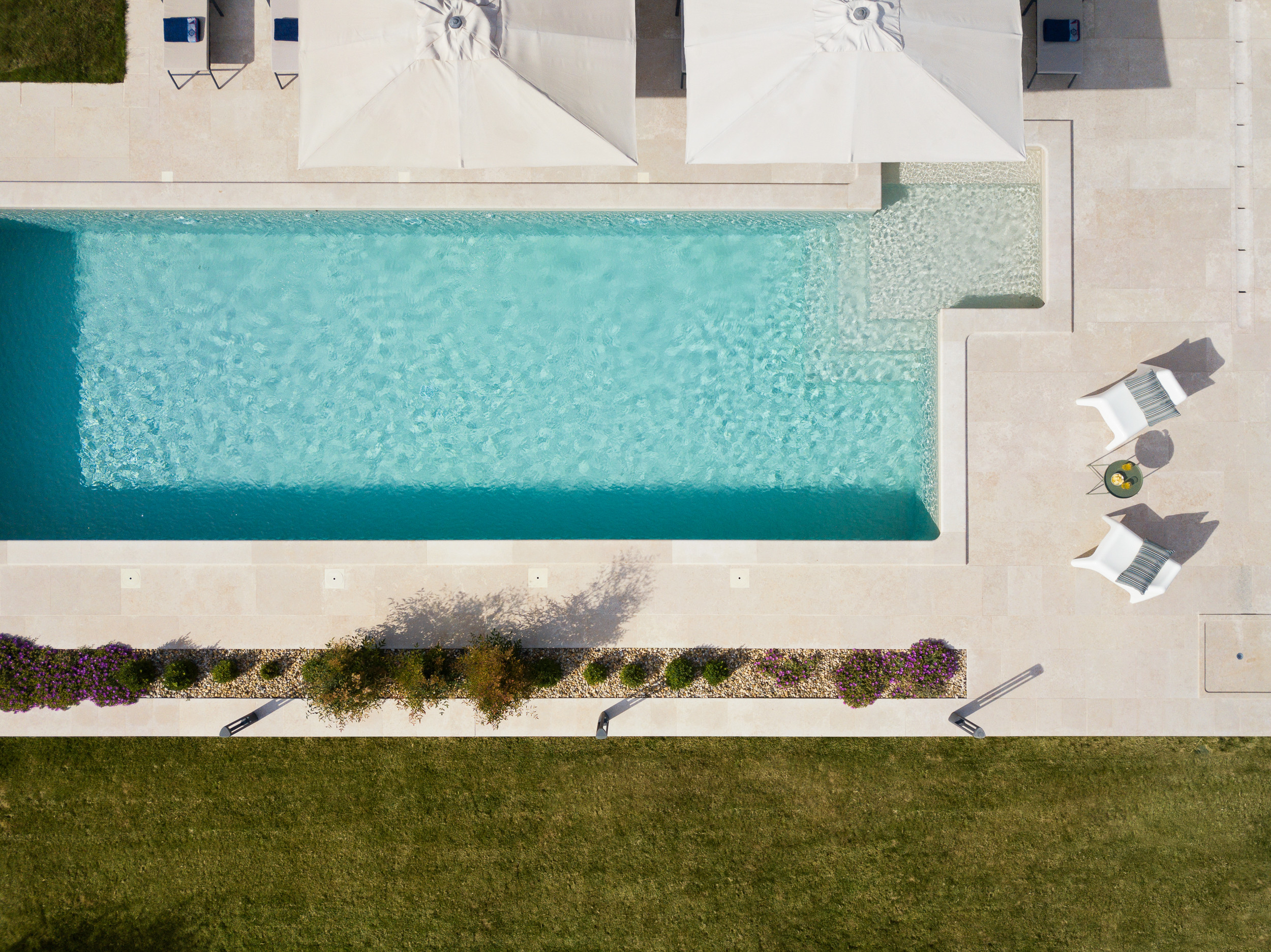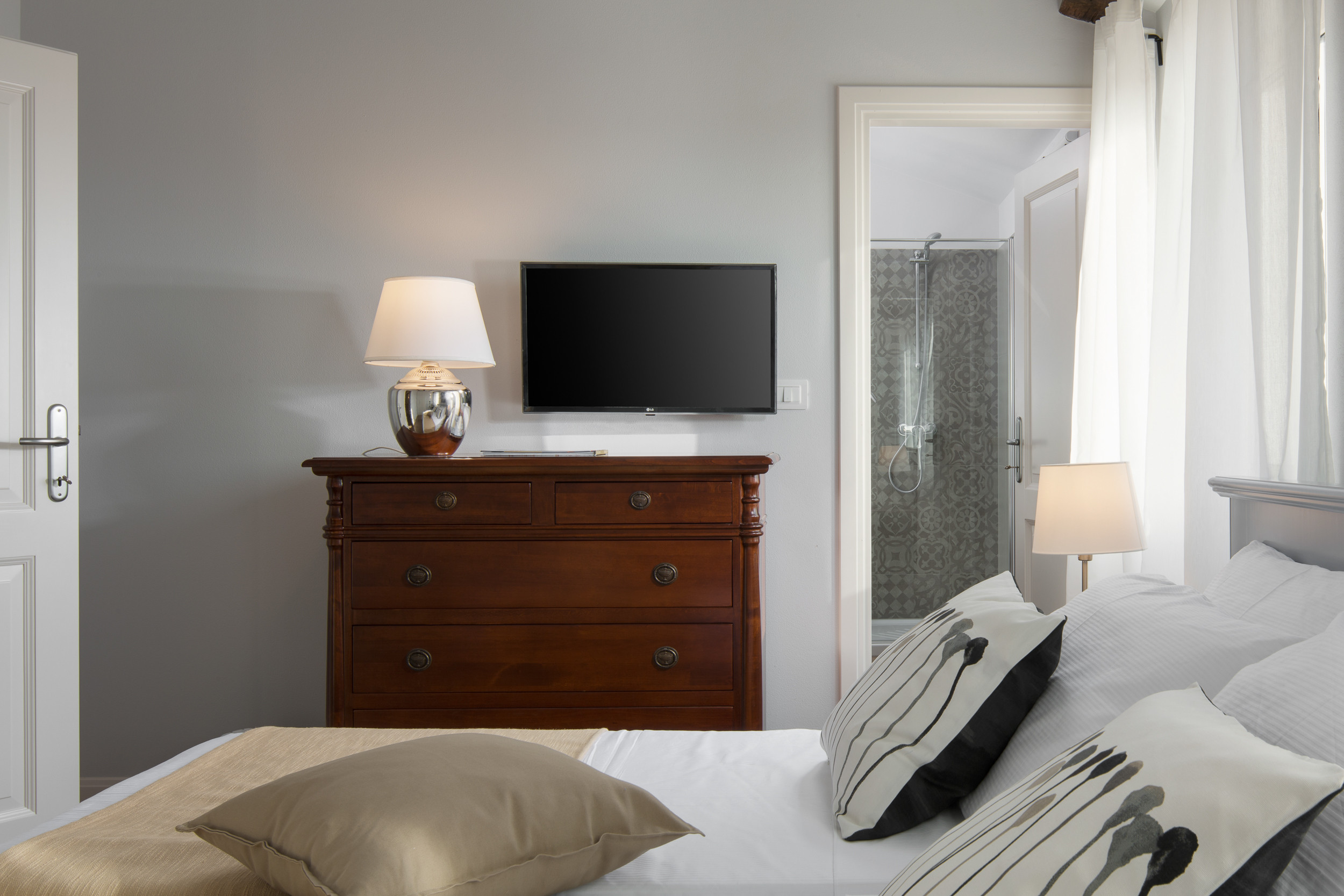 In der Villa stehen Ihnen 4 Schlafzimmer mit Doppelbetten und en-suite Badezimmern zur Verfügung. Drei Badezimmer sind mit einer Dusche ausgestattet, im vierten Schlafzimmer, dem Masterzimmer im Obergeschoss mit Zugang zur Terrasse, befindet sich ein Badezimmer mit Badewanne und einer Schiebetür aus Glas.