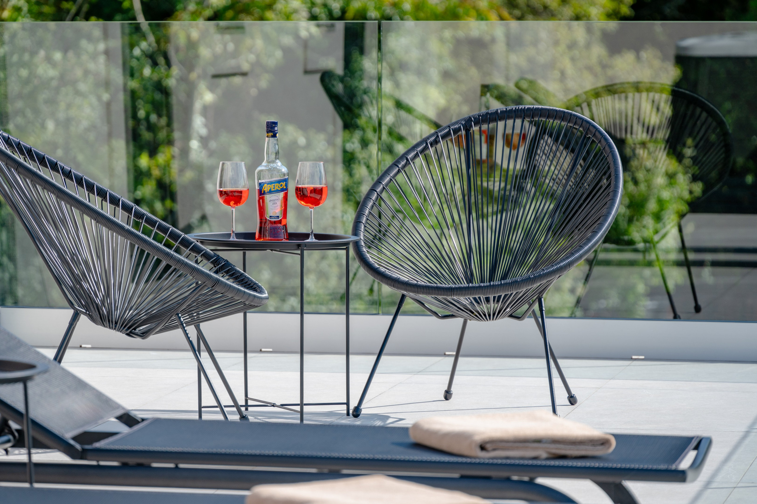 Besonders begeistern wird Sie der Außenwhirlpool im Obergeschoss, neben dem 2 Sonnenliegen stehen.