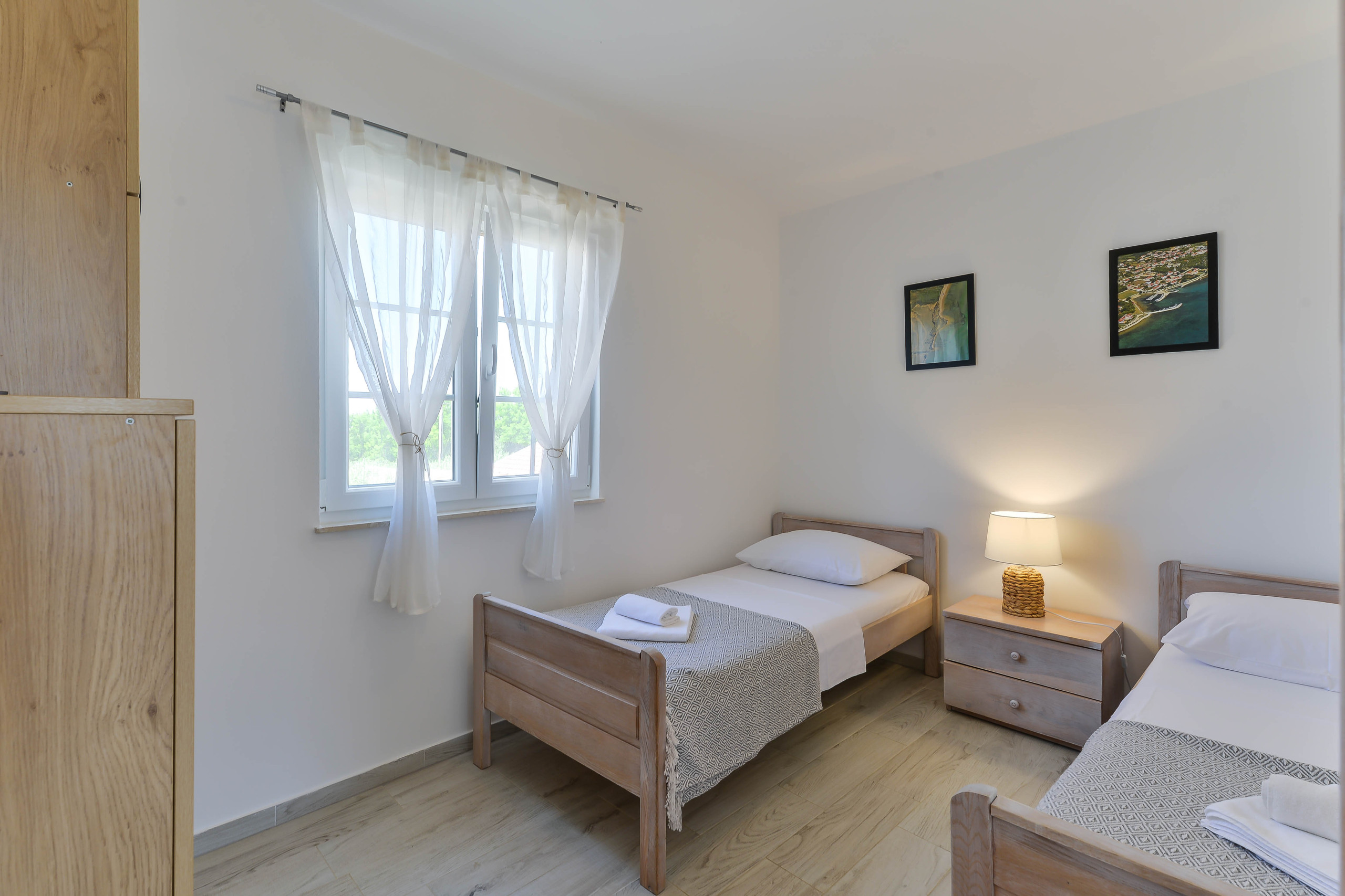 Die wunderschöne Villa Edena mit beheiztem Pool befindet sich in Privlaka, nur 20 km von Zadar entfernt. Privlaka liegt auf einer weitläufigen Halbinsel und ist auf drei Seiten von wunderschönen Sandstränden und azurblauem Meer umgeben. Der Ort ist bekannt für sein wunderschönes klares Meer, seine Strände und Pinienwälder am Meer. Zadar ist eine Stadt, die seit vielen Jahren ein beliebtes Touristenziel ist und gerne von in- und ausländischen Gästen besucht wird. Sie ist bekannt für ihre schönen Strände, die Meeresorgel und die Installation „Greetings to the Sun“, die Sie sicherlich begeistern werden. Diese Villa bietet Ihnen alles, wovon Sie schon lange geträumt haben, und wo Sie sich mit Familie und Freunden vergnügen können. Die Villa Edena ist voll klimatisiert und bietet Ihnen 160 m² Wohnfläche, während die Gesamtfläche des Grundstücks 500 m² beträgt. In der Villa finden maximal 6 Personen Platz. Im Obergeschoss finden Sie 3 komfortable Schlafzimmer, von denen zwei mit einem Doppelbett und das dritte mit 2 Einzelbetten ausgestattet sind. Außerdem stehen Ihnen 2 Badezimmer mit Duschen zur Verfügung und eine separate Toilette sowie eine Waschmaschine. Ein Babybett ist auf vorherige Anfrage erhältlich.