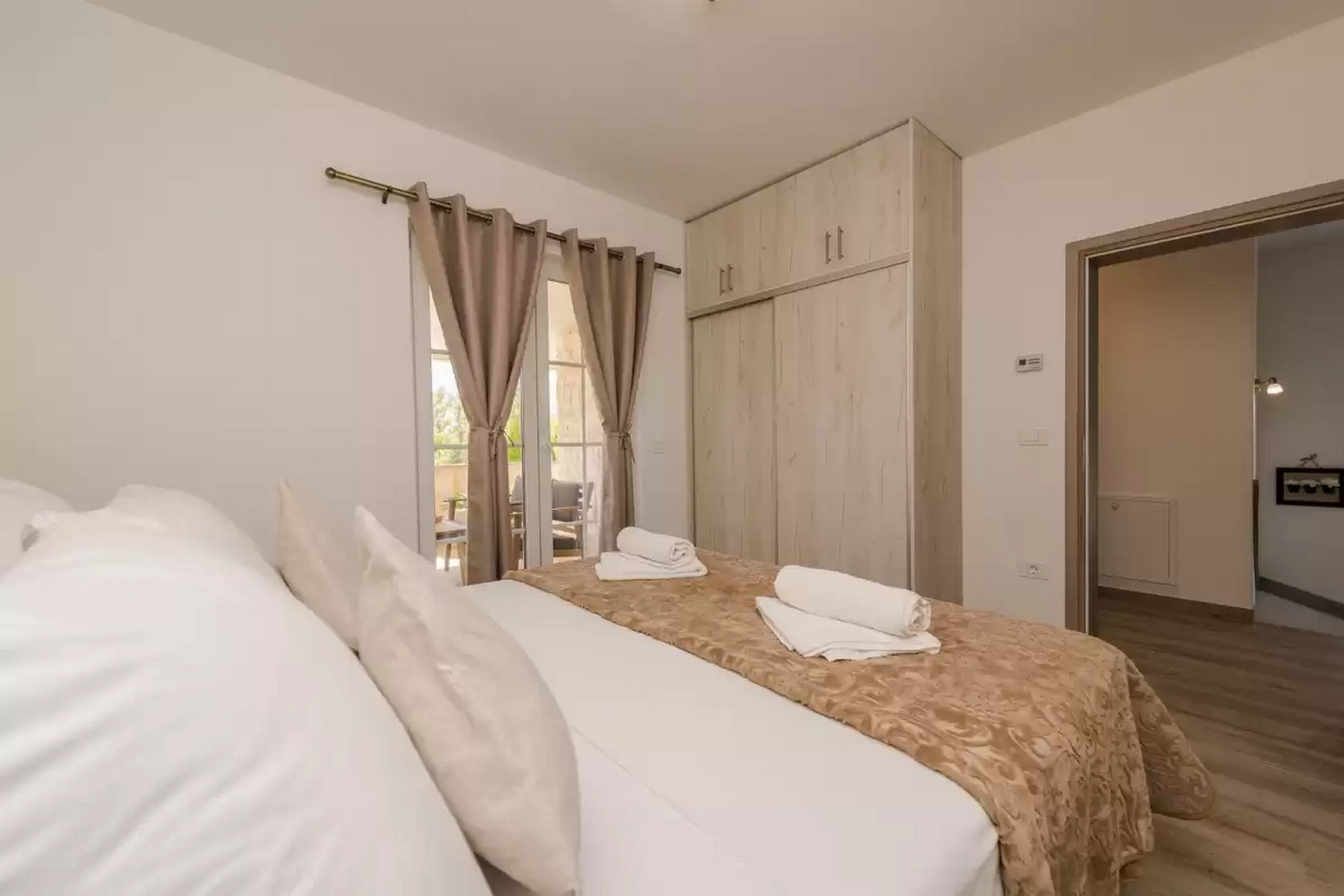 Die wunderschöne Villa Edena mit beheiztem Pool befindet sich in Privlaka, nur 20 km von Zadar entfernt. Privlaka liegt auf einer weitläufigen Halbinsel und ist auf drei Seiten von wunderschönen Sandstränden und azurblauem Meer umgeben. Der Ort ist bekannt für sein wunderschönes klares Meer, seine Strände und Pinienwälder am Meer. Zadar ist eine Stadt, die seit vielen Jahren ein beliebtes Touristenziel ist und gerne von in- und ausländischen Gästen besucht wird. Sie ist bekannt für ihre schönen Strände, die Meeresorgel und die Installation „Greetings to the Sun“, die Sie sicherlich begeistern werden. Diese Villa bietet Ihnen alles, wovon Sie schon lange geträumt haben, und wo Sie sich mit Familie und Freunden vergnügen können. Die Villa Edena ist voll klimatisiert und bietet Ihnen 160 m² Wohnfläche, während die Gesamtfläche des Grundstücks 500 m² beträgt. In der Villa finden maximal 6 Personen Platz. Im Obergeschoss finden Sie 3 komfortable Schlafzimmer, von denen zwei mit einem Doppelbett und das dritte mit 2 Einzelbetten ausgestattet sind. Außerdem stehen Ihnen 2 Badezimmer mit Duschen zur Verfügung und eine separate Toilette sowie eine Waschmaschine. Ein Babybett ist auf vorherige Anfrage erhältlich.