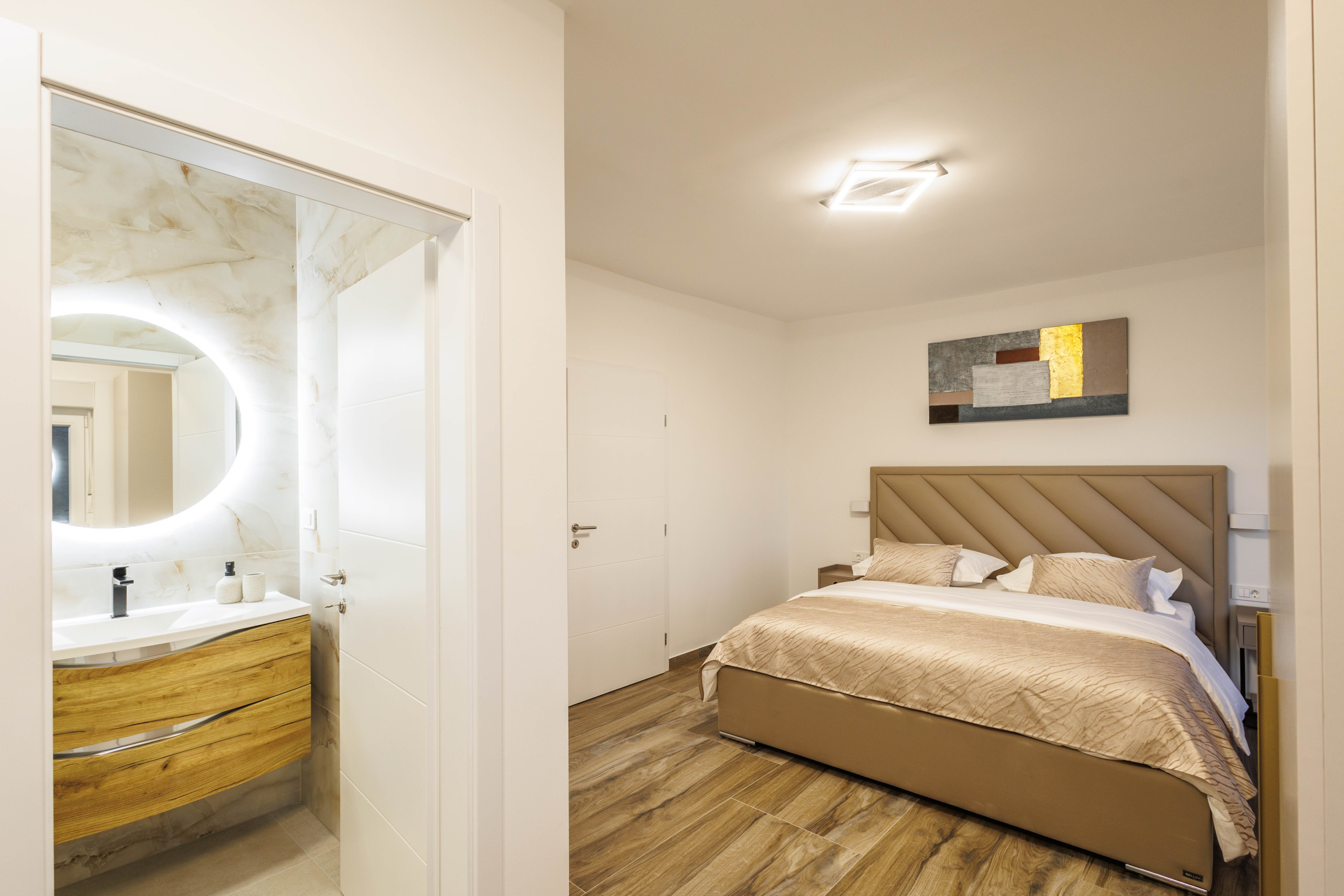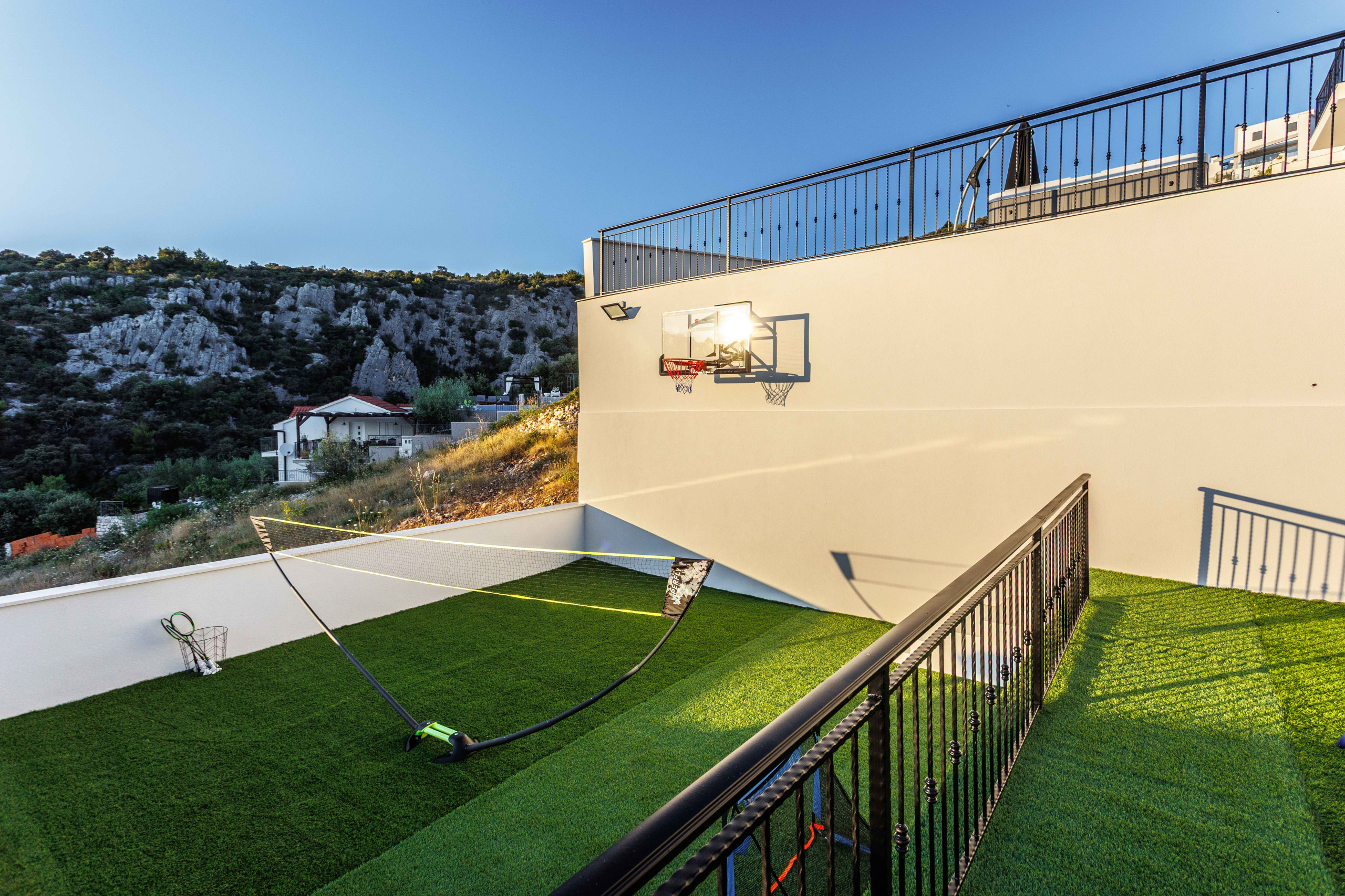 Trotz der ruhigen Lage ist die Villa nur eine kurze Autofahrt von der historischen UNESCO-geschützten Stadt Trogir entfernt. Dort können Besucher die jahrhundertealte Architektur, enge Gassen, lebhafte Cafés und Restaurants entlang der Promenade entdecken. In der Nähe befindet sich auch die lebendige Stadt Split mit dem berühmten Diokletianpalast sowie zahlreichen kulturellen Veranstaltungen, Einkaufsmöglichkeiten und einem abwechslungsreichen Nachtleben.