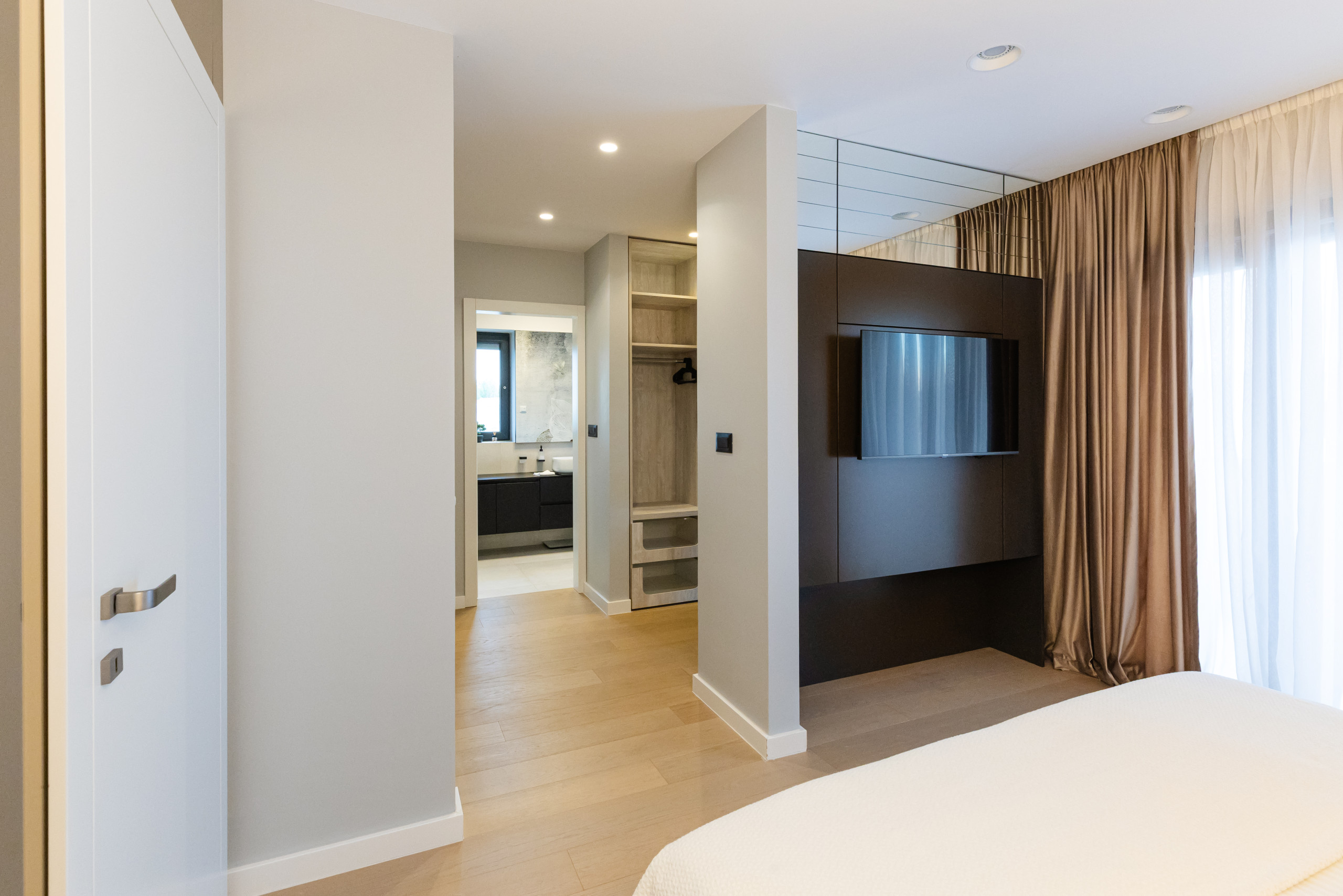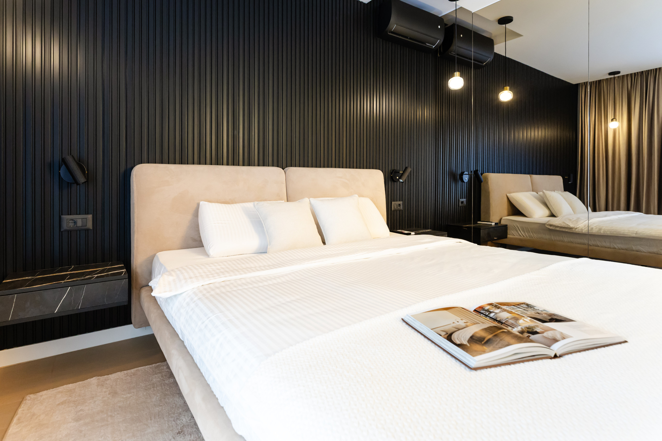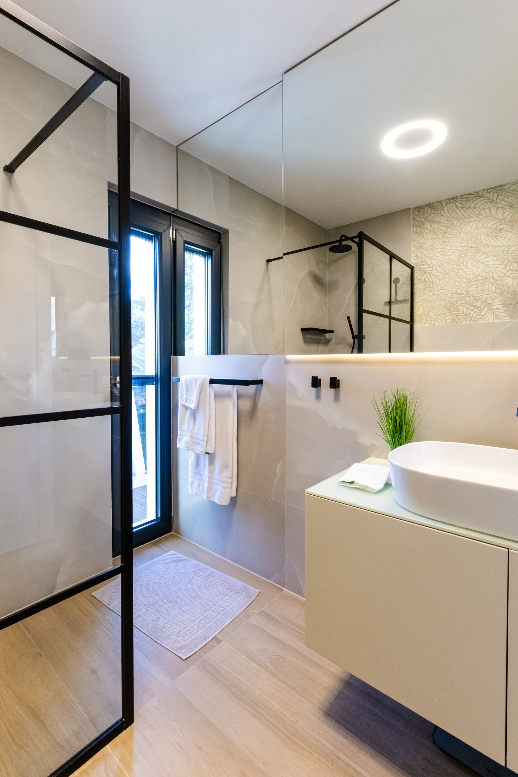 Die luxuriöse Villa Positiva bietet Platz für maximal 8 Personen, optimalerweise für 6 Personen. Ihnen stehen 261 m² Wohnfläche und insgesamt 780 m² Grundstück zur Verfügung. Die Villa ist 800 Meter vom nächsten Meer entfernt. Sie ist voll klimatisiert und verfügt über 3 Schlafzimmer mit TV und Balkon. Alle Schlafzimmer befinden sich im Obergeschoss, zwei Zimmer haben ein Doppelbett, während das dritte Zimmer über 2 Einzelbetten verfügt. Es gibt außerdem 2 Badezimmer, eines davon en-suite, beide mit Dusche. Zu den weiteren Annehmlichkeiten gehören 1 separates WC, Waschmaschine, Trockner und Bügeleisen. Ein Babybett ist nach vorheriger Absprache verfügbar. Zwei weitere Personen können auf dem Schlafsofa im Wohnzimmer schlafen.