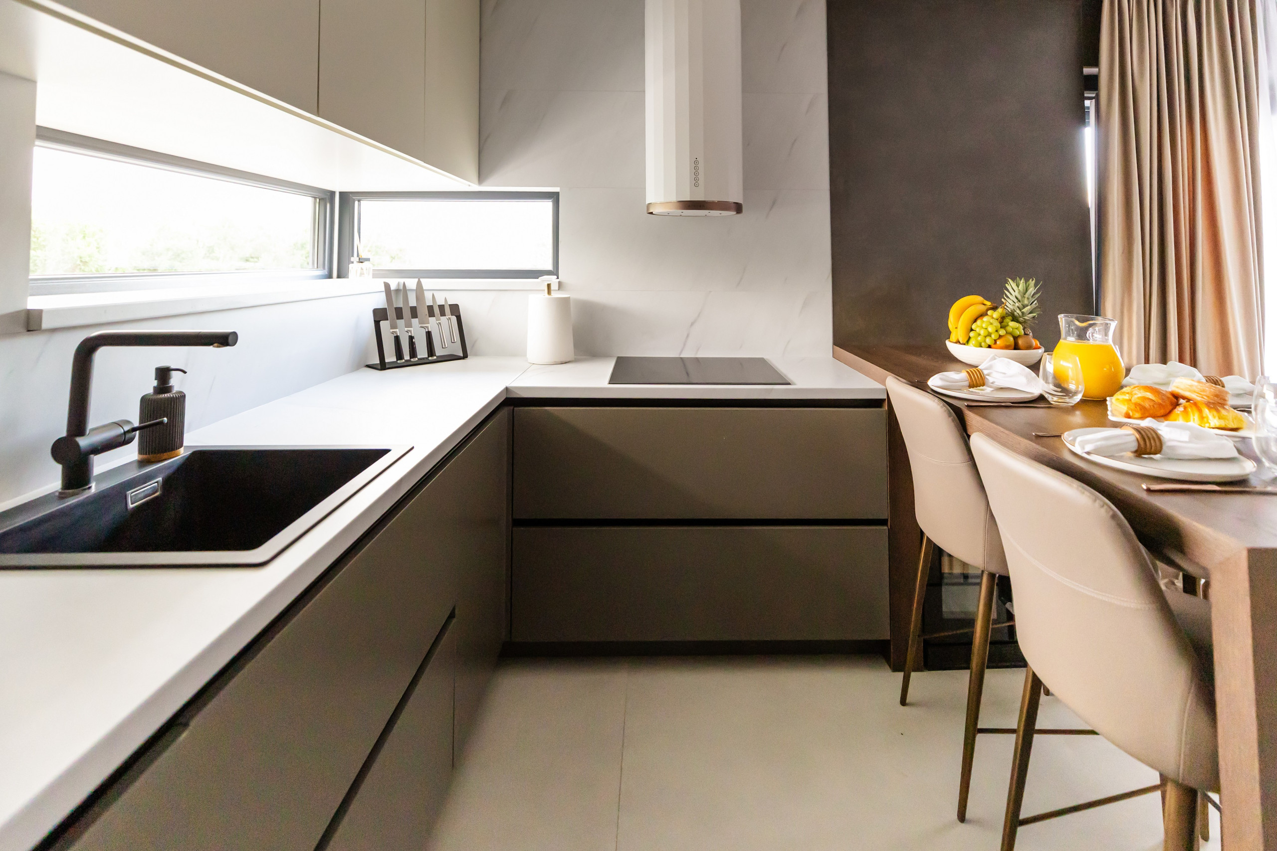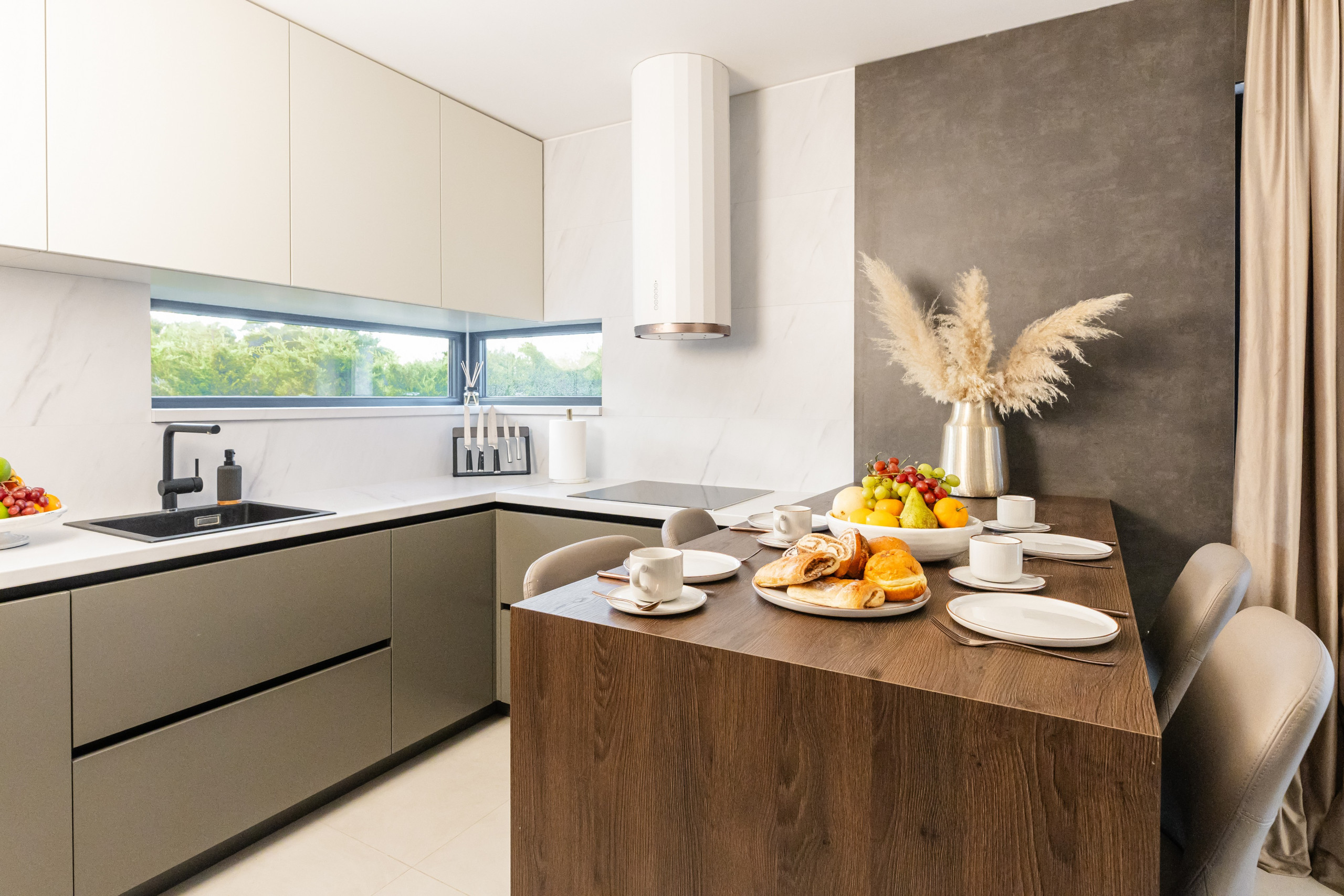 Die Küche und das Esszimmer sind modern eingerichtet und bieten ausreichend Platz, um Ihre Lieblingsgerichte mit Familie und Freunden zu genießen. Das Esszimmer verfügt über 8 Sitzplätze und 4 zusätzliche Barhocker an der Bar.