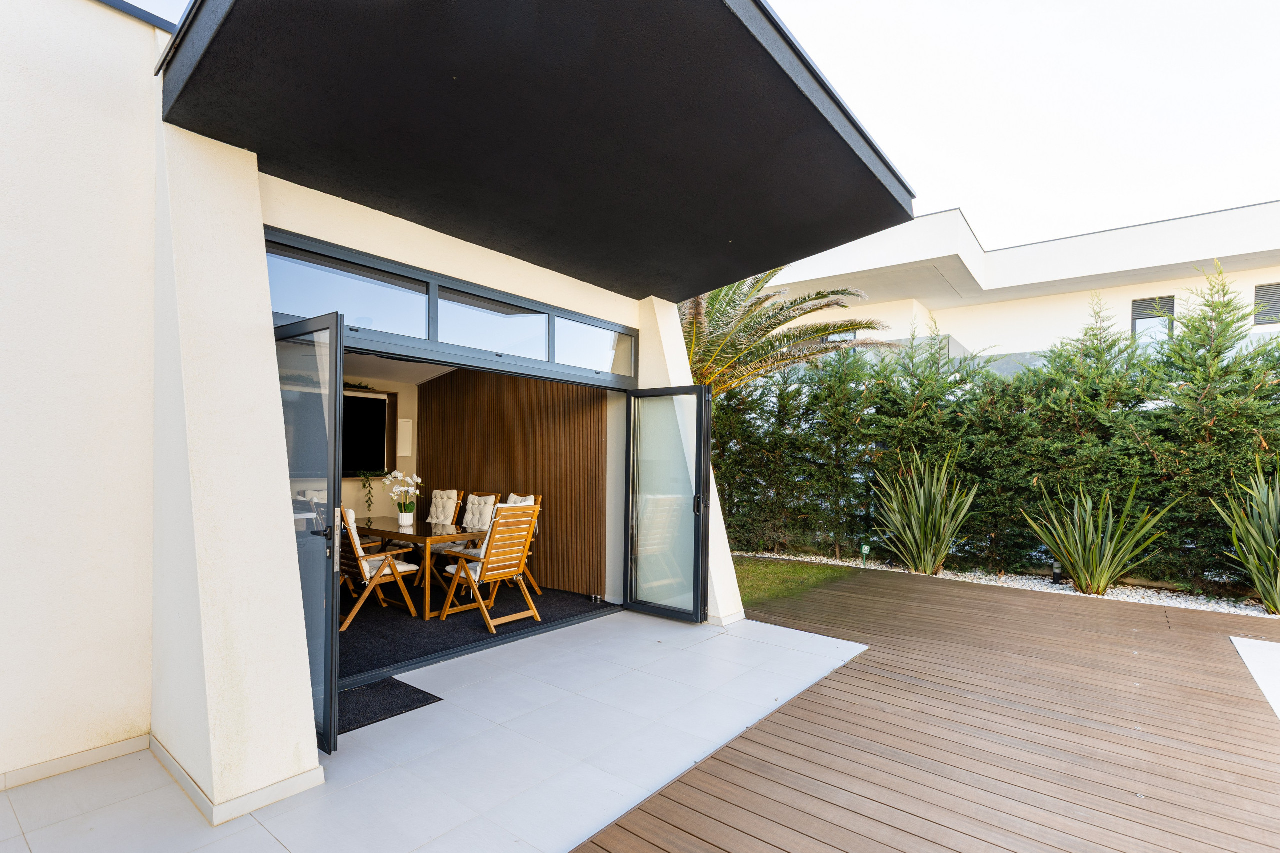 Die Außenterrasse bietet einen 32 m² großen beheizten Meerwasserpool, 4 Sonnenliegen, Gartenmöbel und eine Außendusche. Auf der Terrasse befindet sich auch eine überdachte Außenküche mit Esstisch und Fernseher. Sie können auch den Holzgrill im Freien benutzen.