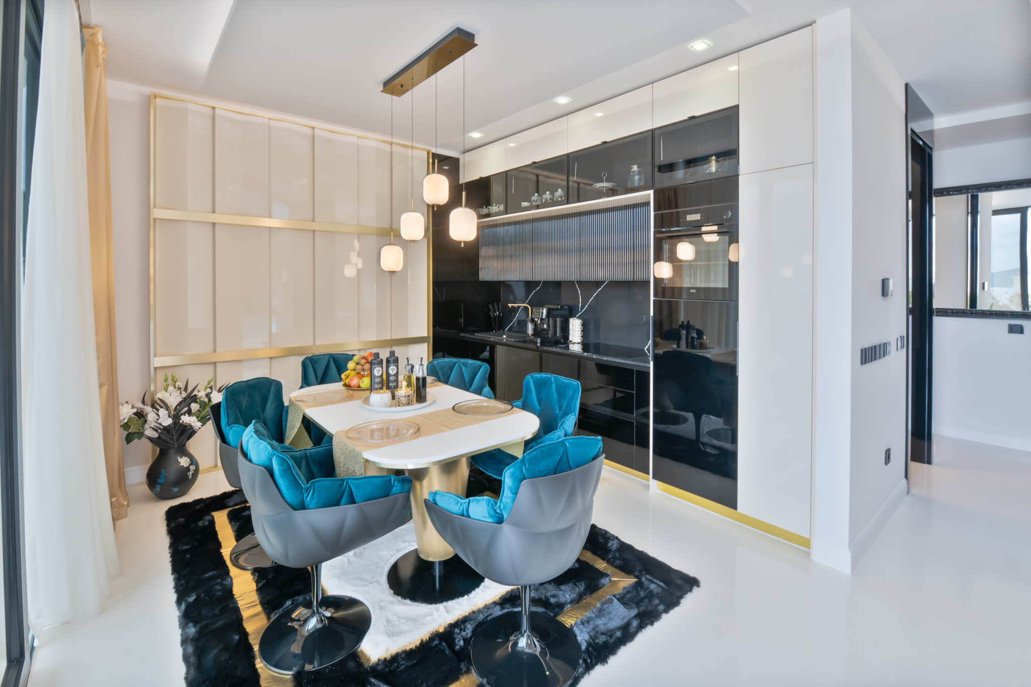 Die moderne und schön eingerichtete Küche ist mit allem ausgestattet, was Sie für die Zubereitung von Mahlzeiten für Familie oder Freunde benötigen, und es gibt auch ein schönes Esszimmer mit einem Esstisch. Außerdem bietet die Villa von der Küche und dem Wohnzimmer aus einen wunderschönen Meerblick.