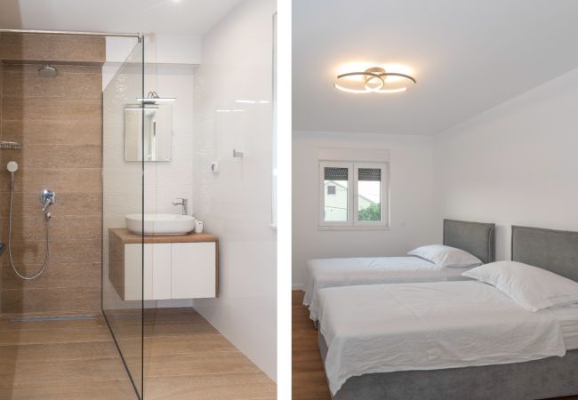 Die Villa Katarina ist voll klimatisiert und bietet Ihnen 110 m² Wohnfläche, während die Gesamtfläche des Anwesens 500 m² beträgt. Villa Katarina bietet Platz für maximal 8, optimalerweise 6 Personen. Sie werden bequem in 3 Schlafzimmern mit Fernseher untergebracht, die jeweils mit einem Doppelbett ausgestattet sind. Ein zusätzliches Bett für zwei Personen ist das Schlafsofa im Wohnzimmer. Sie können auch die Badezimmer mit Duschen nutzen, und eine Waschmaschine, ein Trockner und ein Bügeleisen stehen Ihnen ebenfalls zur Verfügung.