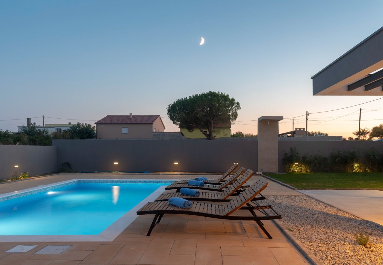 Die luxuriöse Villa Aria, die sich nur 6 km vom Stadtzentrum von Zadar befindet, ist alles, wovon Sie schon lange träumen. Sie ist ideal für einen perfekten Urlaub mit Familie und Freunden, bei dem Sie den alltäglichen Verpflichtungen entfliehen können. Zadar ist eine bekannte Touristenstadt, die Ihnen alles bietet, was Sie für einen perfekten Urlaub benötigen.