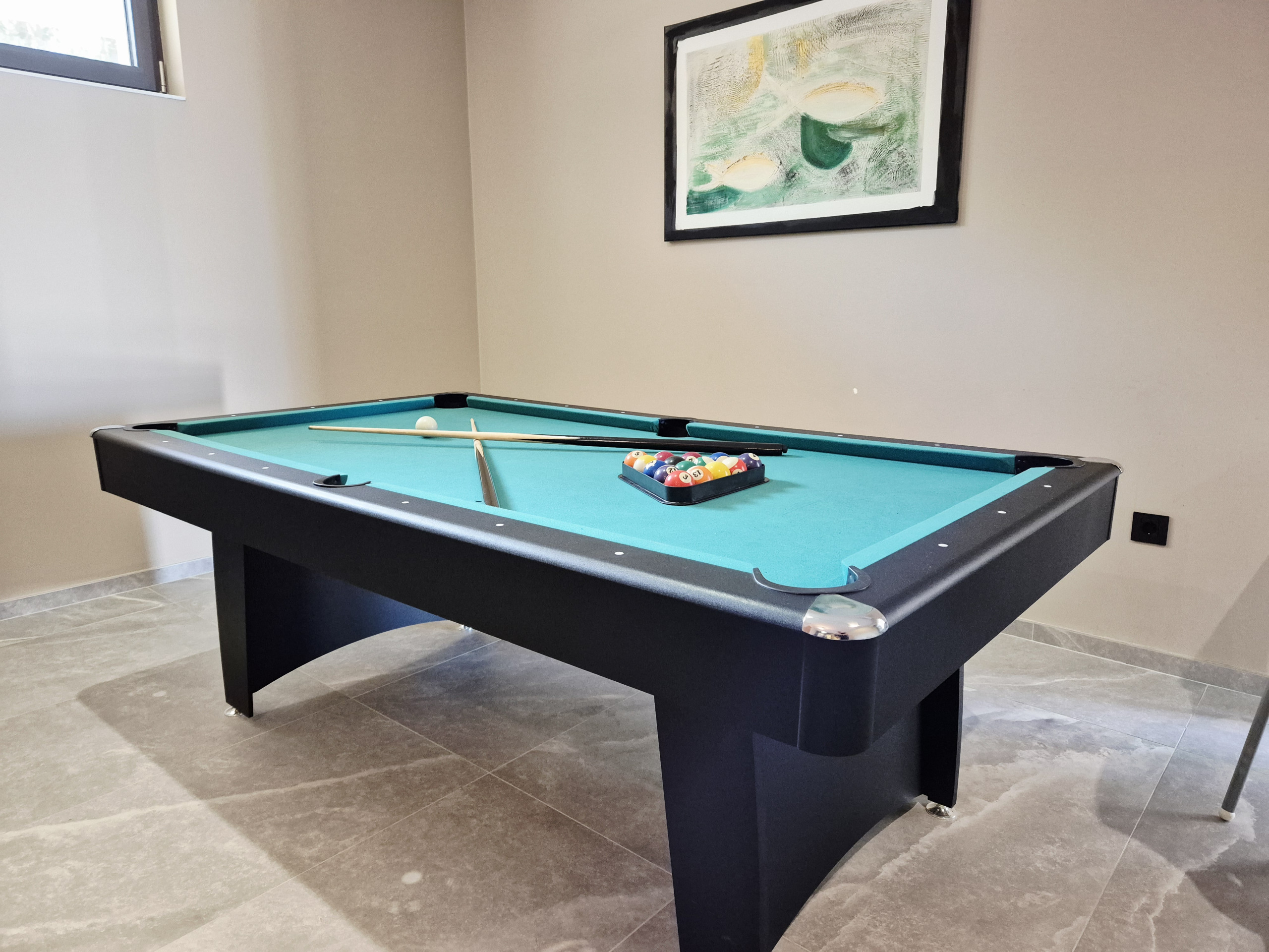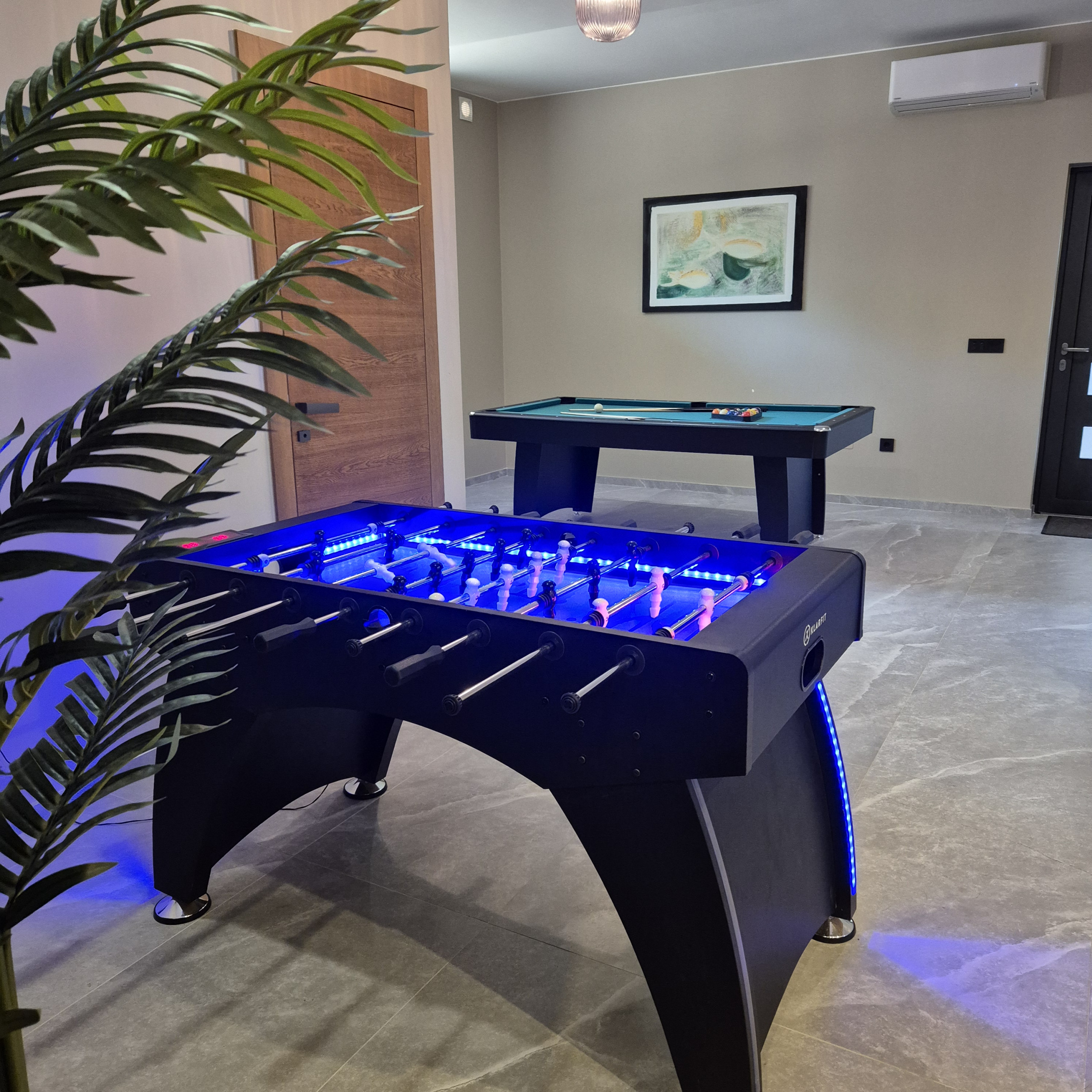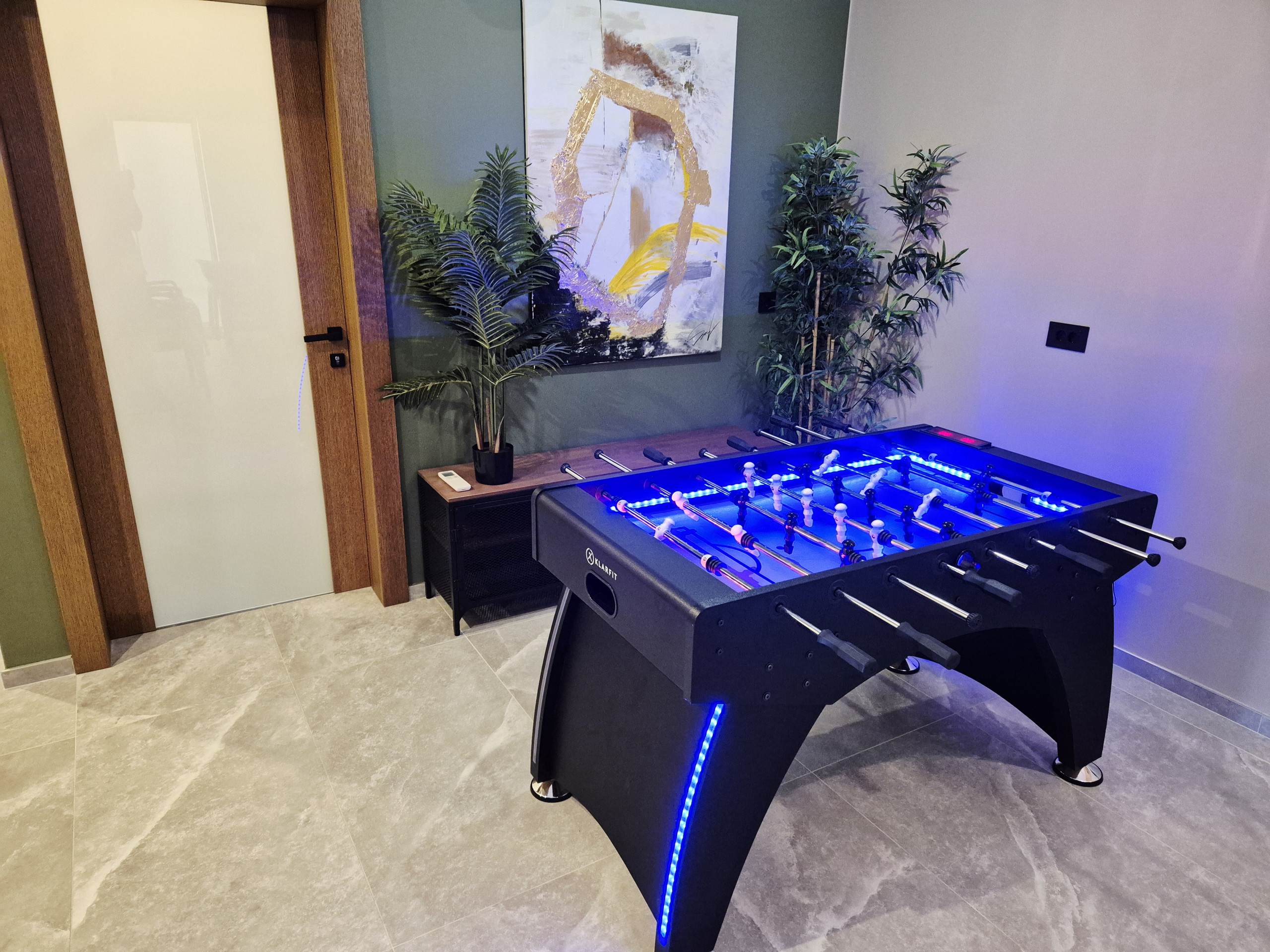 Zusätzliche Annehmlichkeiten wie ein Whirlpool, ein Fitnessraum, eine Sauna und ein privater Bootsanleger unterstreichen die Exklusivität dieser Immobilie. Zur Unterhaltung stehen ein Kinderspielplatz mit Kunstrasen, eine PlayStation 5, eine Musikanlage, Billard, Tischfußball und Boccia zur Verfügung.