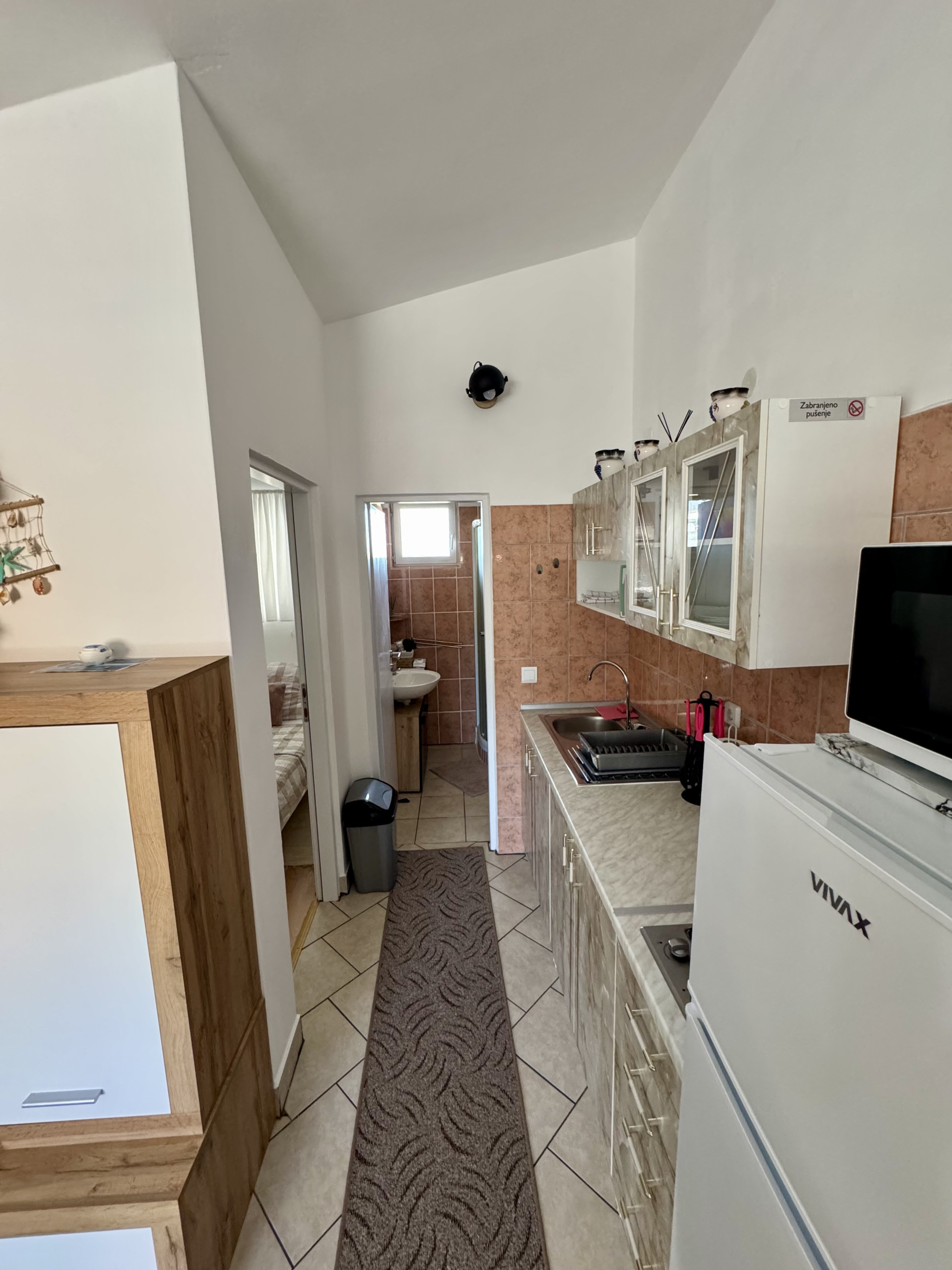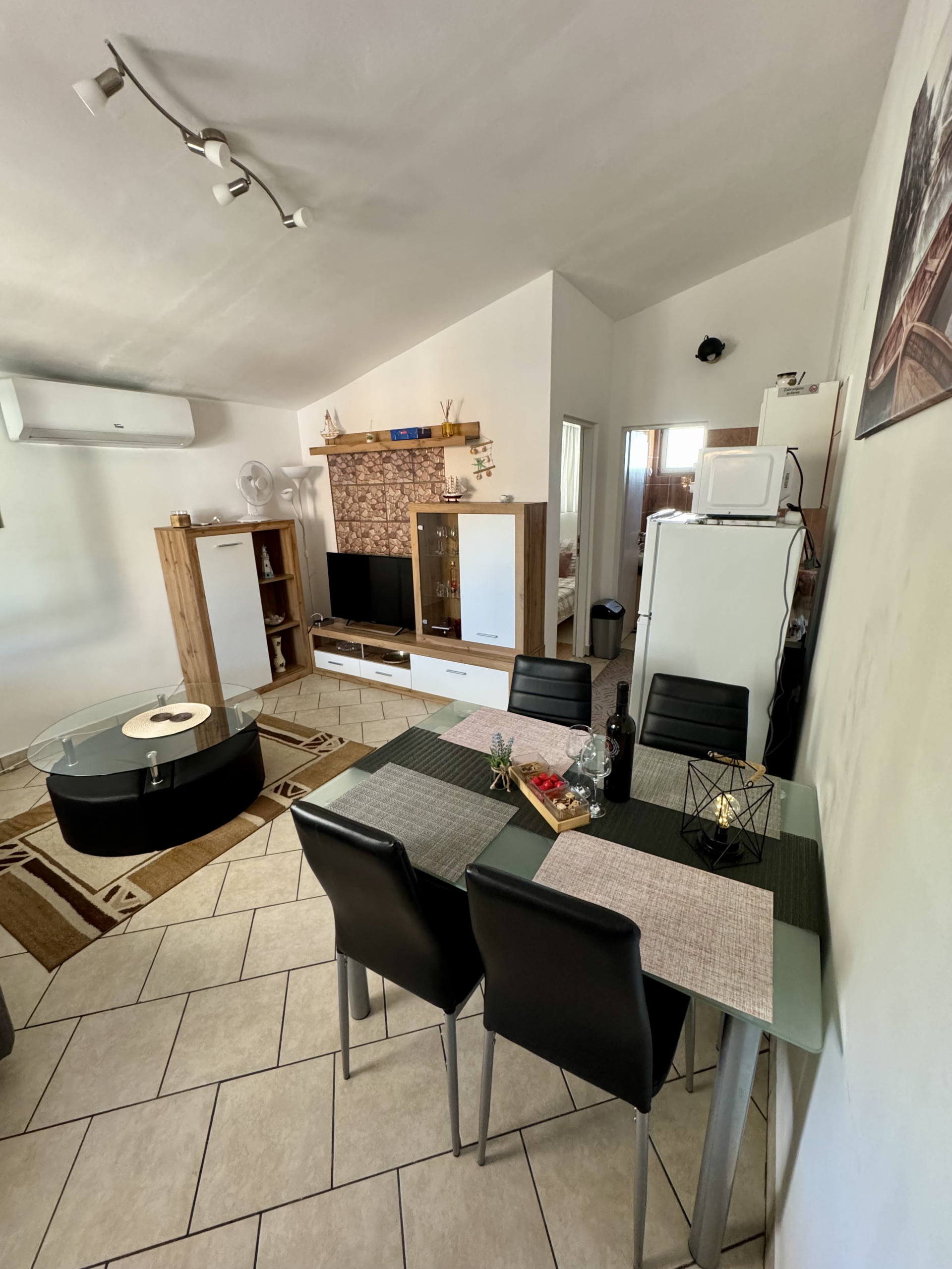 Apartment Didovi Dvori 2 is located in a residential building on the 1st floor. It offers you 27 m² of living space and room for a maximum of 4 people. You will be comfortably accommodated in 1 bedroom with a double bed, and there is also a sofa bed. The living room has a television and a coffee table, and next to it is a dining area and a kitchen that is equipped with everything you need to prepare meals for family or friends. There is also 1 bathroom with a shower.