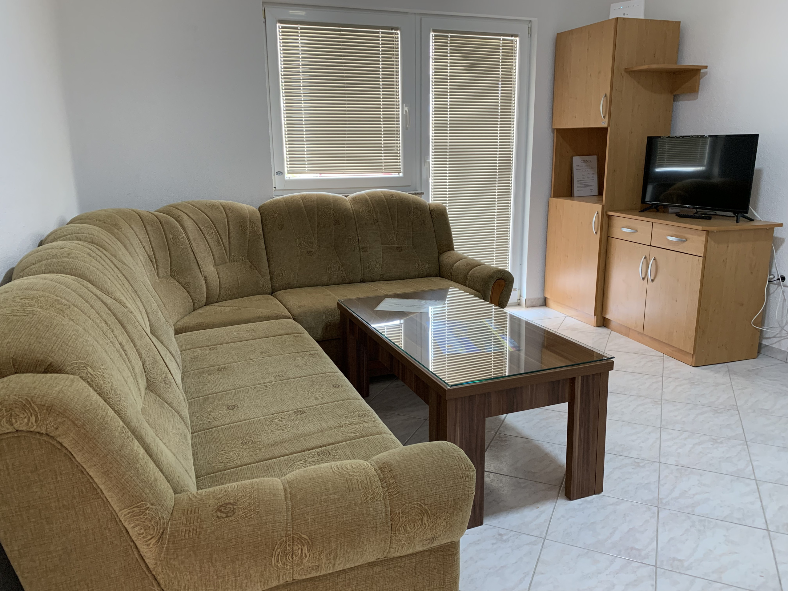 The apartment is modern and functionally furnished and provides everything you need for a pleasant stay. It consists of 2 bedrooms with double beds, a fully equipped kitchen, a comfortable living room with a sofa bed for an additional two people, a bathroom with a shower and a balcony/terrace where you can drink your morning coffee with the smell of the sea. It is air-conditioned, has free Wi-Fi, a TV and 1 parking space provided.