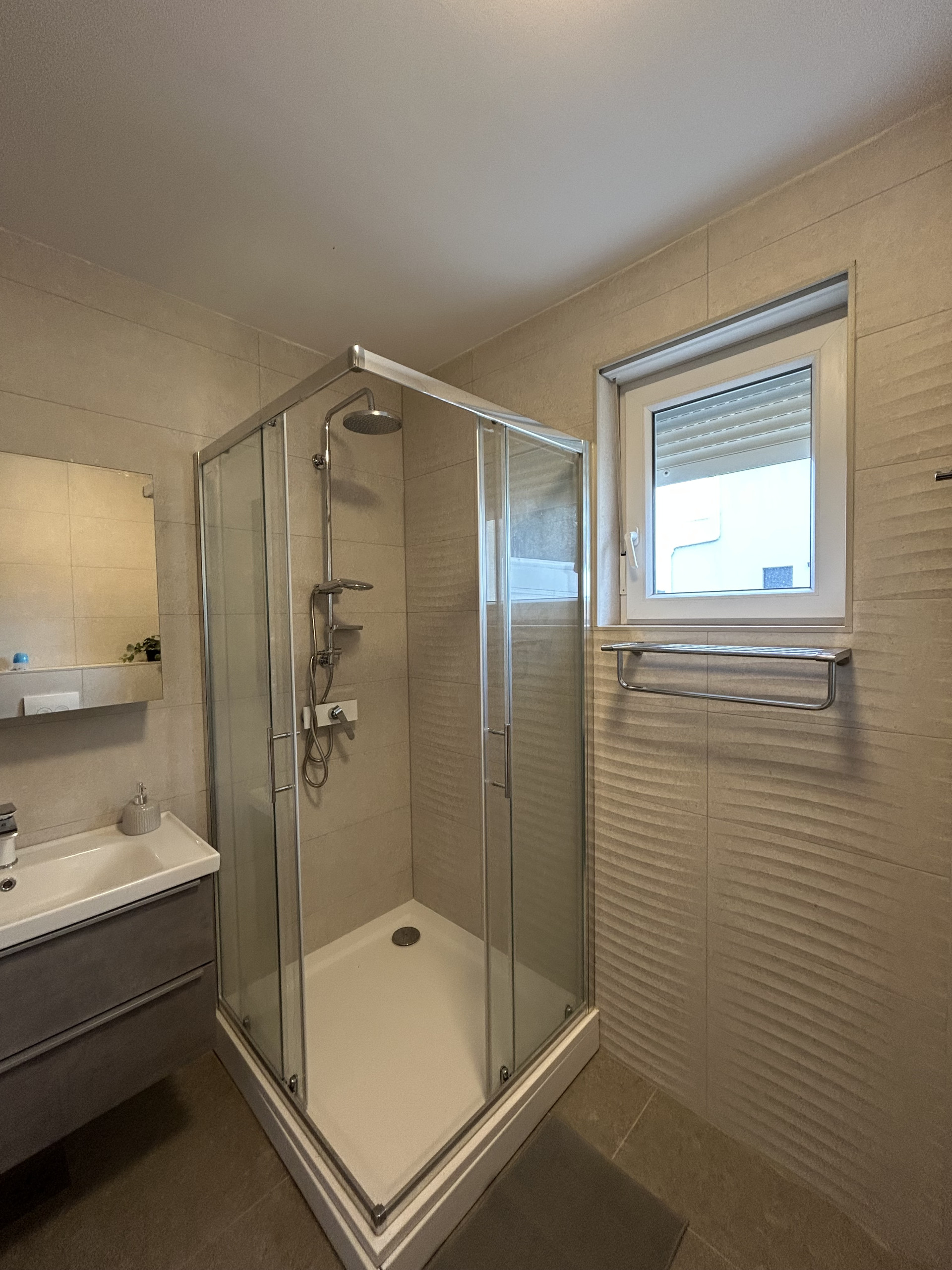 A special highlight is the large terrace, featuring a beautiful heated swimming pool of 40 m². The terrace and heated pool are shared by guests of the Mariner 1 and Mariner 2 apartments. Here, you can relax on sun loungers and enjoy the sunshine throughout the day. The terrace also includes an elegant dining table, perfect for enjoying meals outdoors in a pleasant Mediterranean atmosphere.