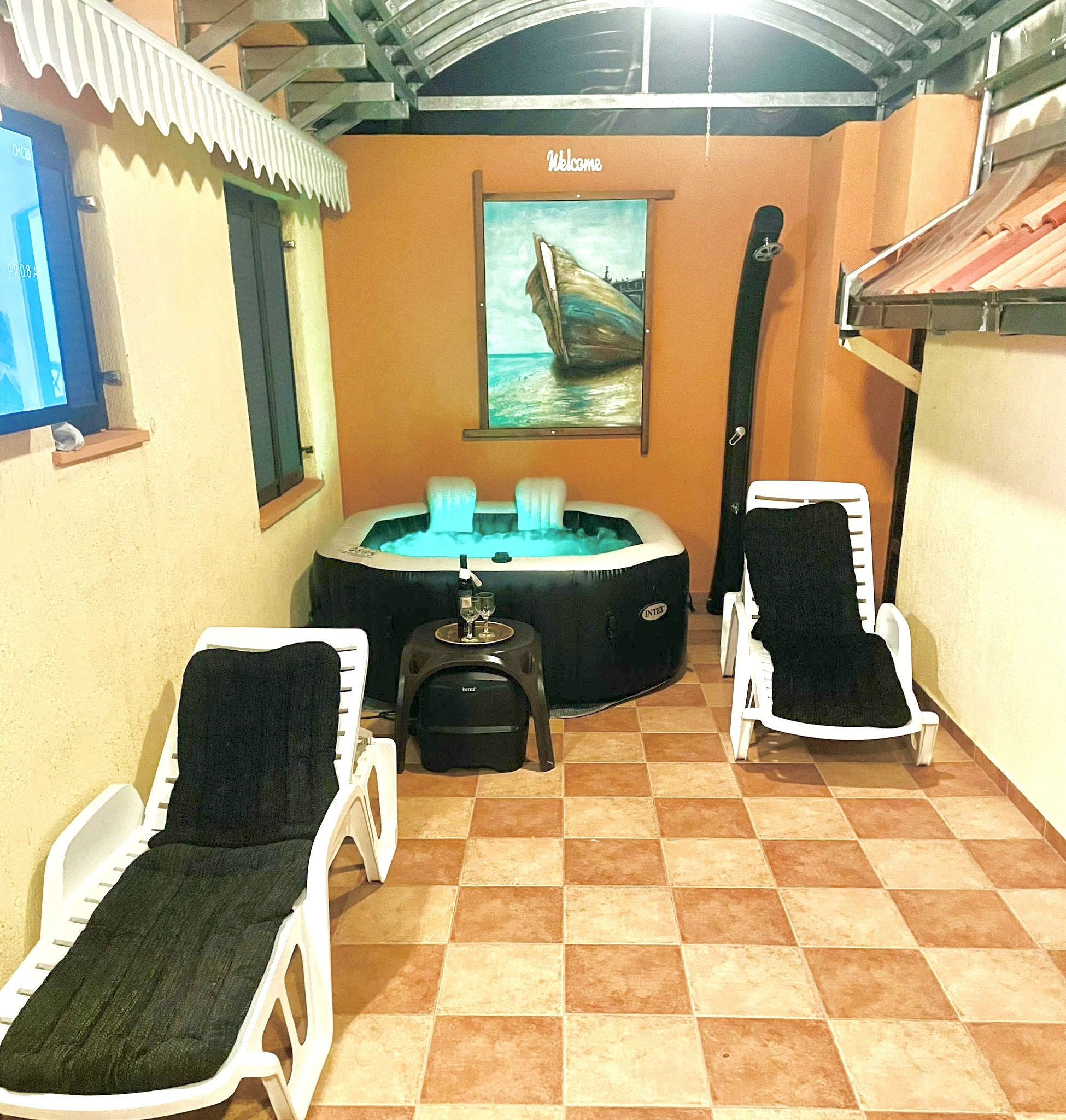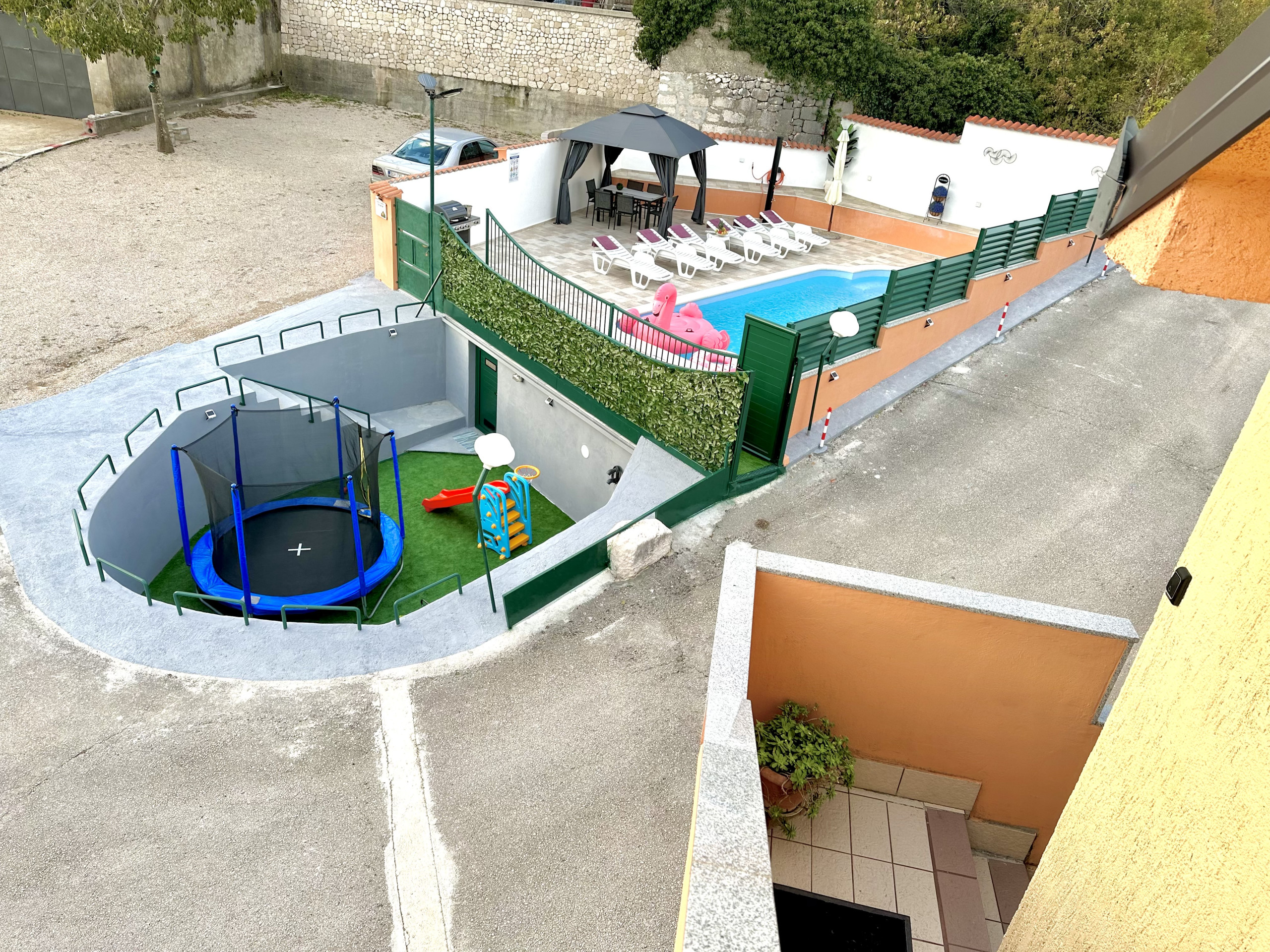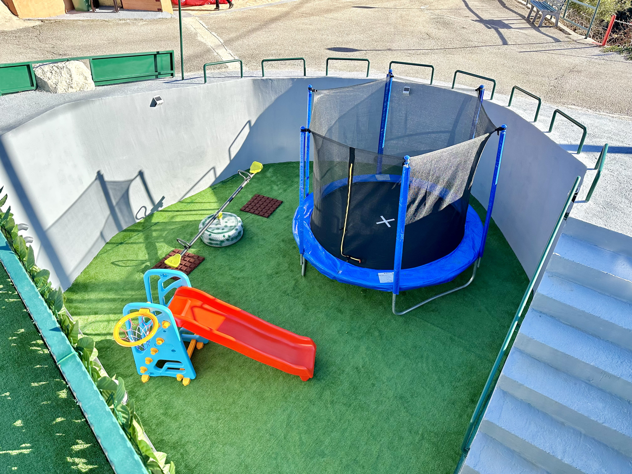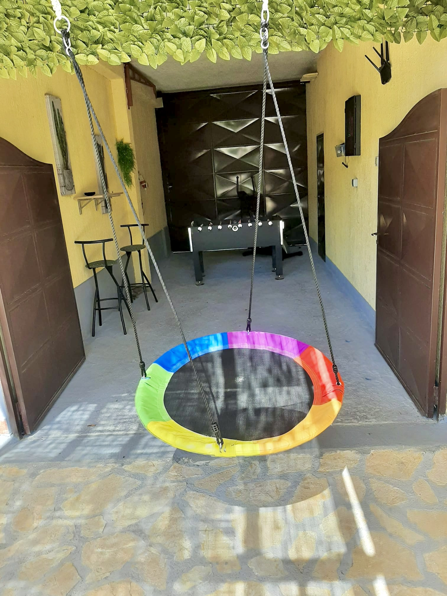 A special highlight of the property is the spacious terrace, which features a beautiful 36-square-meter swimming pool, surrounded by 8 sun loungers for complete relaxation and enjoyment. The terrace is also equipped with a jacuzzi which is available for guests to use. Both the terrace and the yard are rich in amenities for children, including table football, swings, and various other facilities, making it a perfect choice for families with kids.