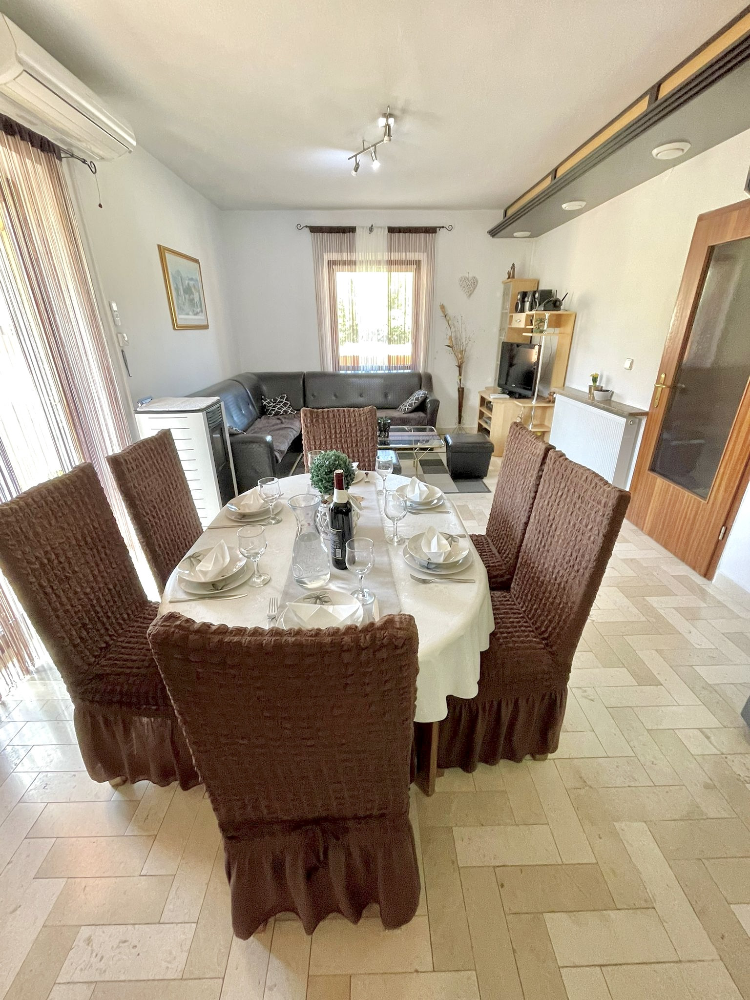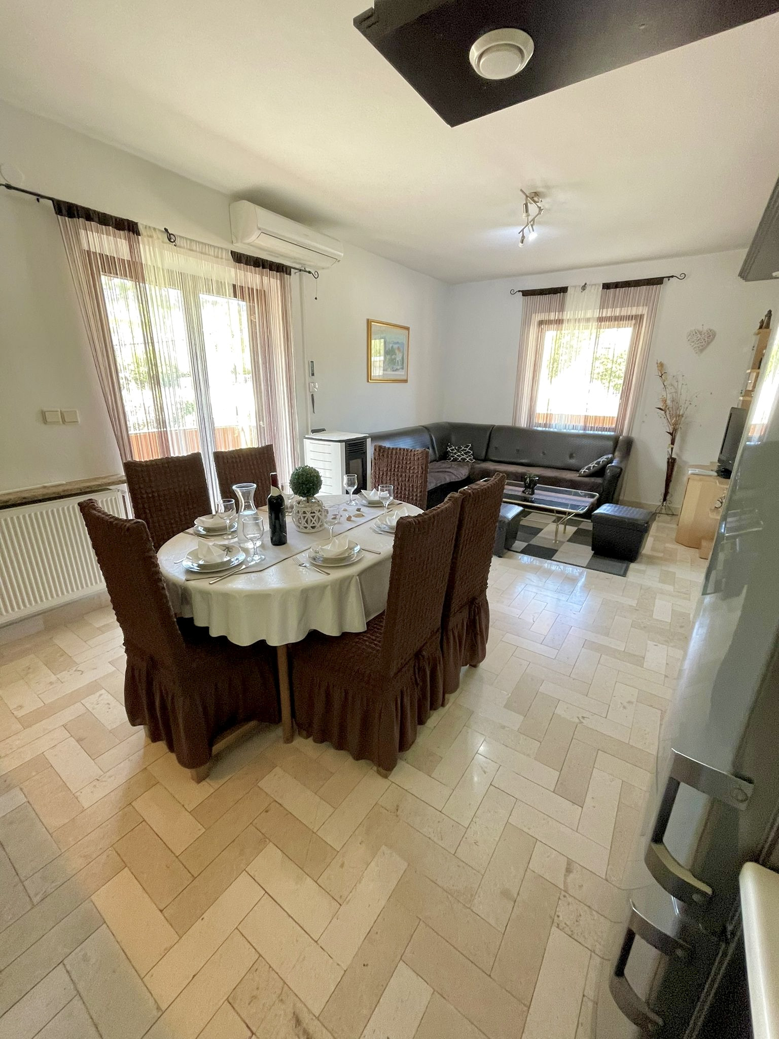 Holiday Home Roka is air-conditioned, ensuring a comfortable stay during the warmer summer days. The house consists of a ground floor and a first floor. The ground floor includes a kitchen, dining area, living room, two bedrooms, and a bathroom. The first floor also features an additional kitchen, a living room with dining area, one bedroom, and one bathroom, making it ideal for larger families or multiple groups of guests.