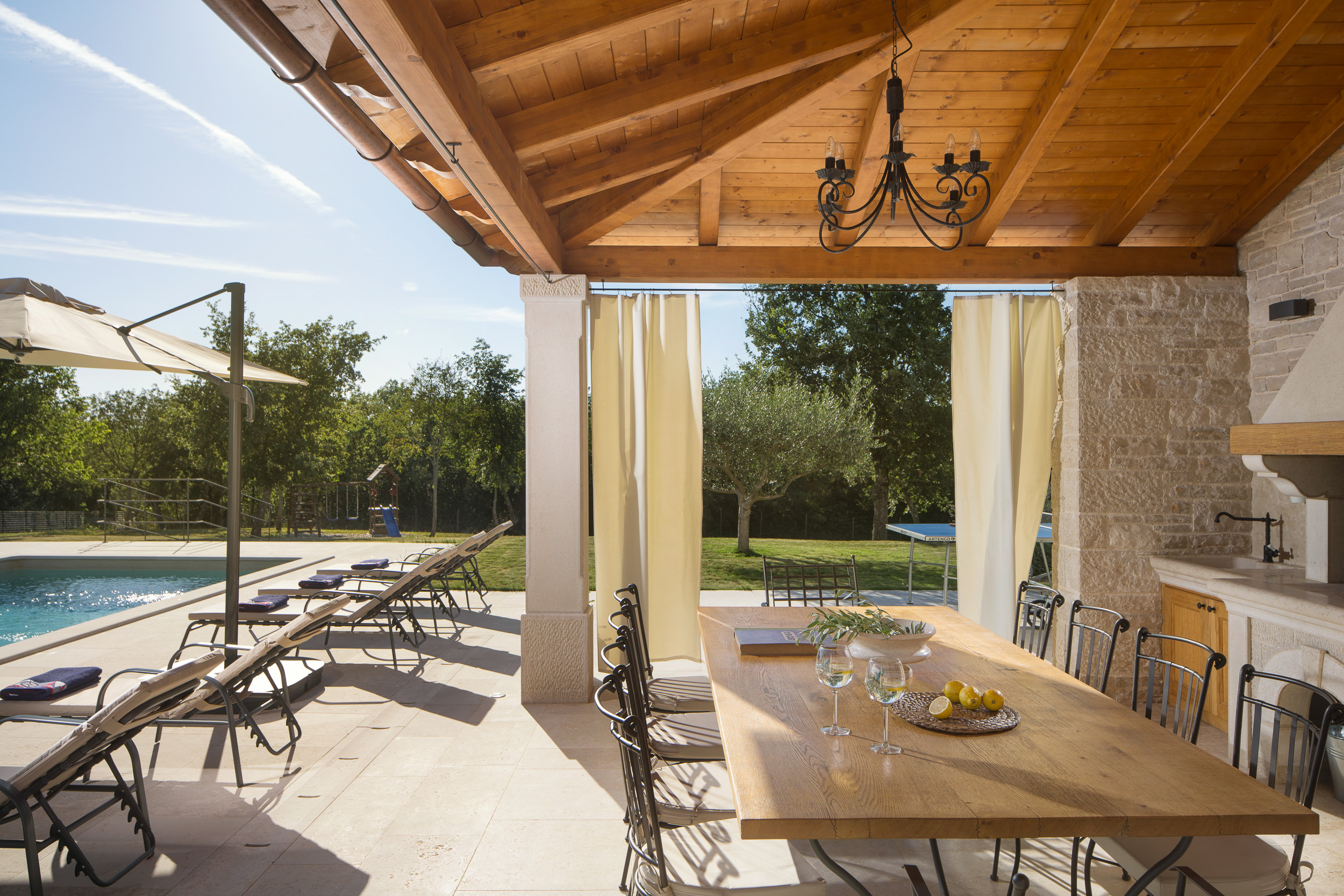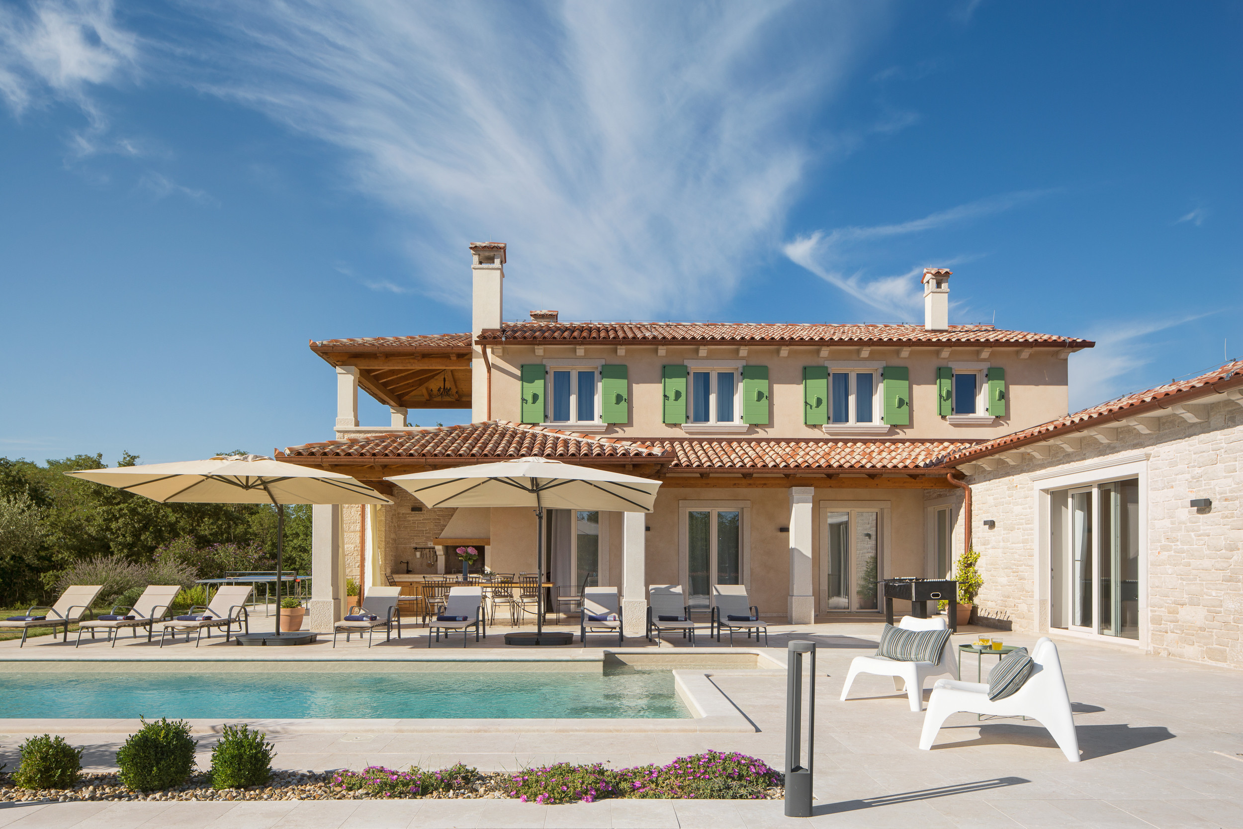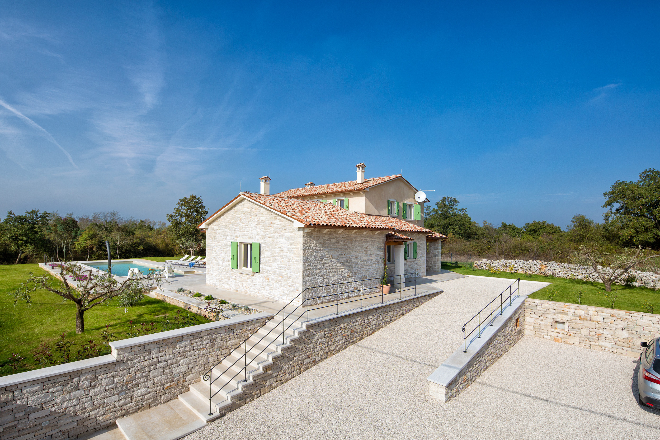 The beautiful villa Ovi is located in Istria, in the village of Kvešti. Kvešti is a small village in central Istria, near larger towns such as Motovun and Karojba. It is a quiet, rural area typical of the Istrian interior — ideal for those looking for a vacation in nature, silence and an authentic village atmosphere.