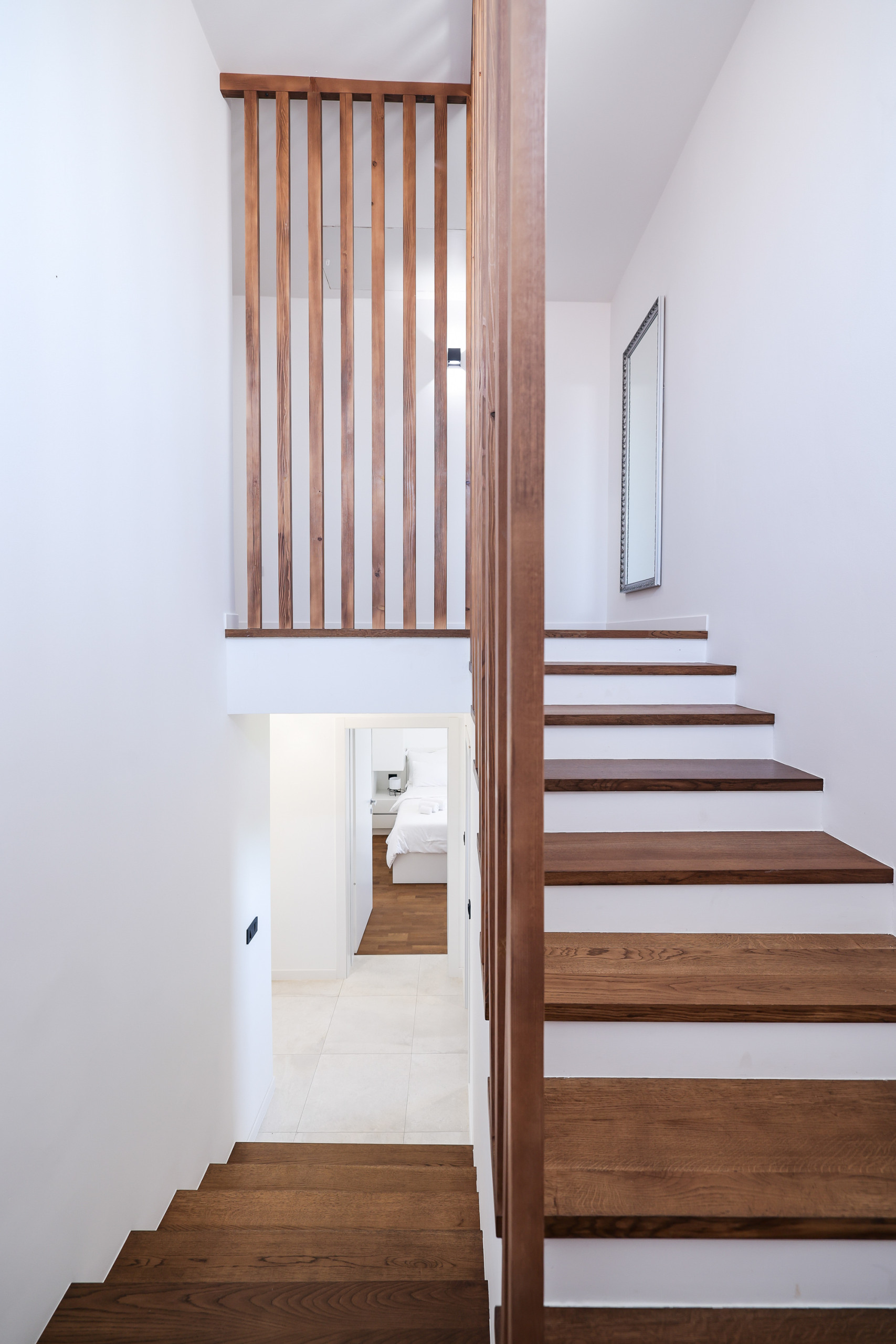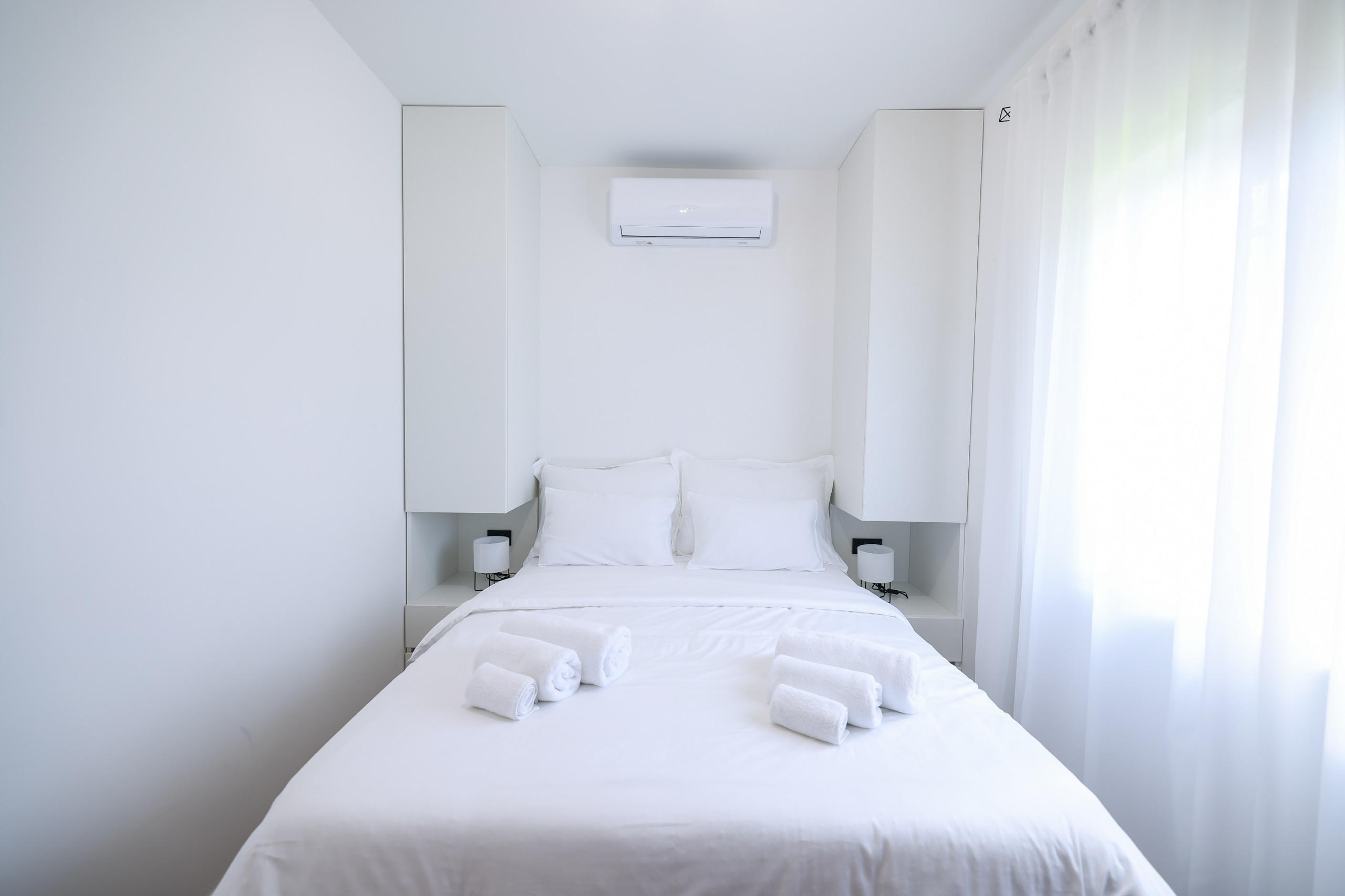 The villa is fully air-conditioned, with 4 spacious bedrooms on the upper floor, accommodating up to 8 guests. Each bedroom is equipped with a comfortable double bed to ensure a peaceful night's sleep. There are also 3 bathrooms and one separate toilet, ensuring enough space for everyone. On the ground floor, the open kitchen is fully equipped with modern appliances, including a refrigerator, washing machine, coffee machine, oven and dishwasher, making meal preparation easy. The cozy living room has a fireplace, perfect for chilly evenings, and provides access to the balcony, which offers a beautiful view of the sea where you can enjoy with family and friends.