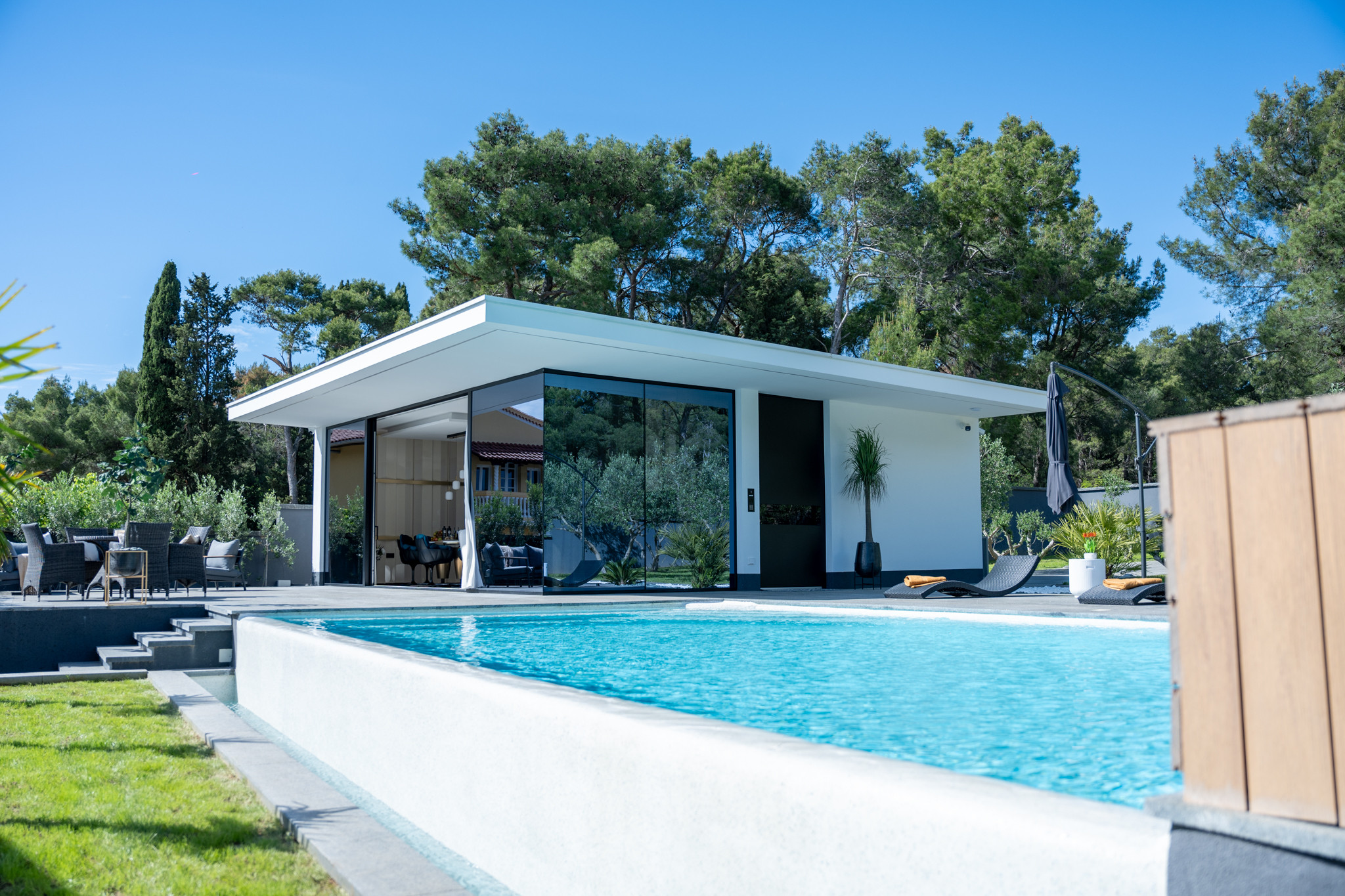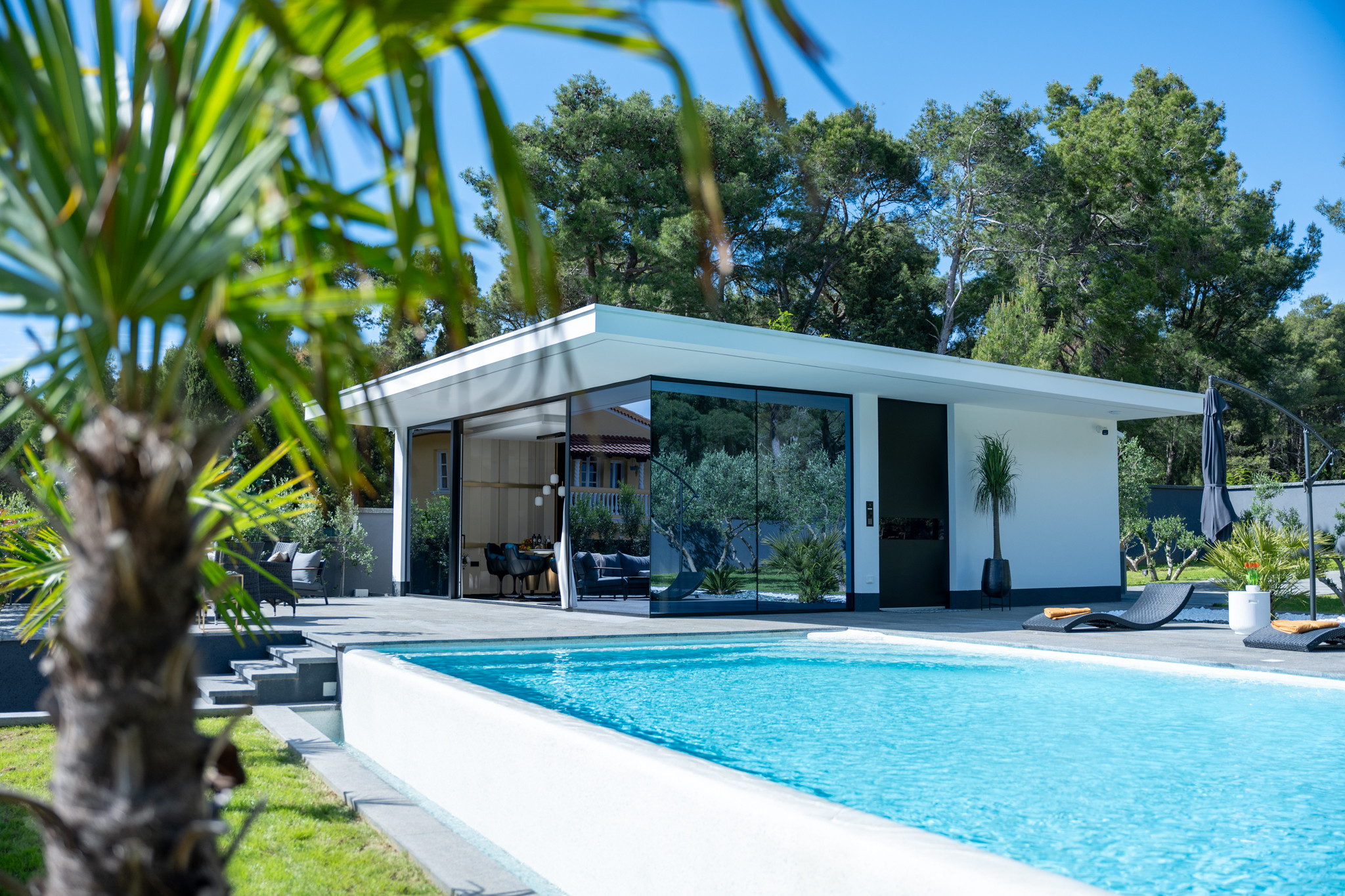 Located in the quiet and attractive neighborhood of Diklo in Zadar, not far from the historic center of Zadar, Luxury Matoš Estate is an elegant villa that offers the perfect combination of privacy, comfort and Mediterranean lifestyle.